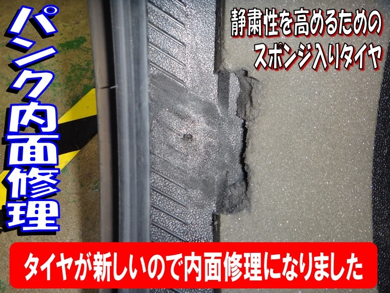 タイヤの内側に大きな吸音スポンジが貼ってありました。(;´Д`)