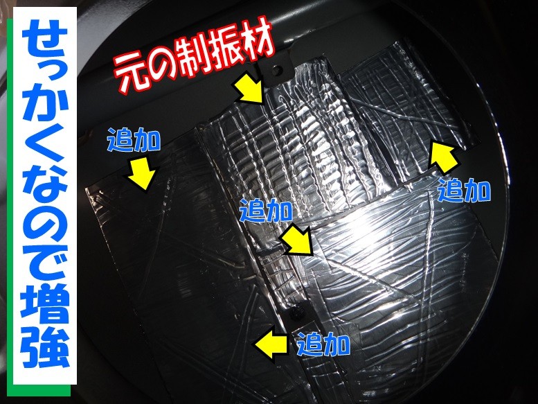 純正のポイント制振材周りに、ポイントを追加して補強しておきました。