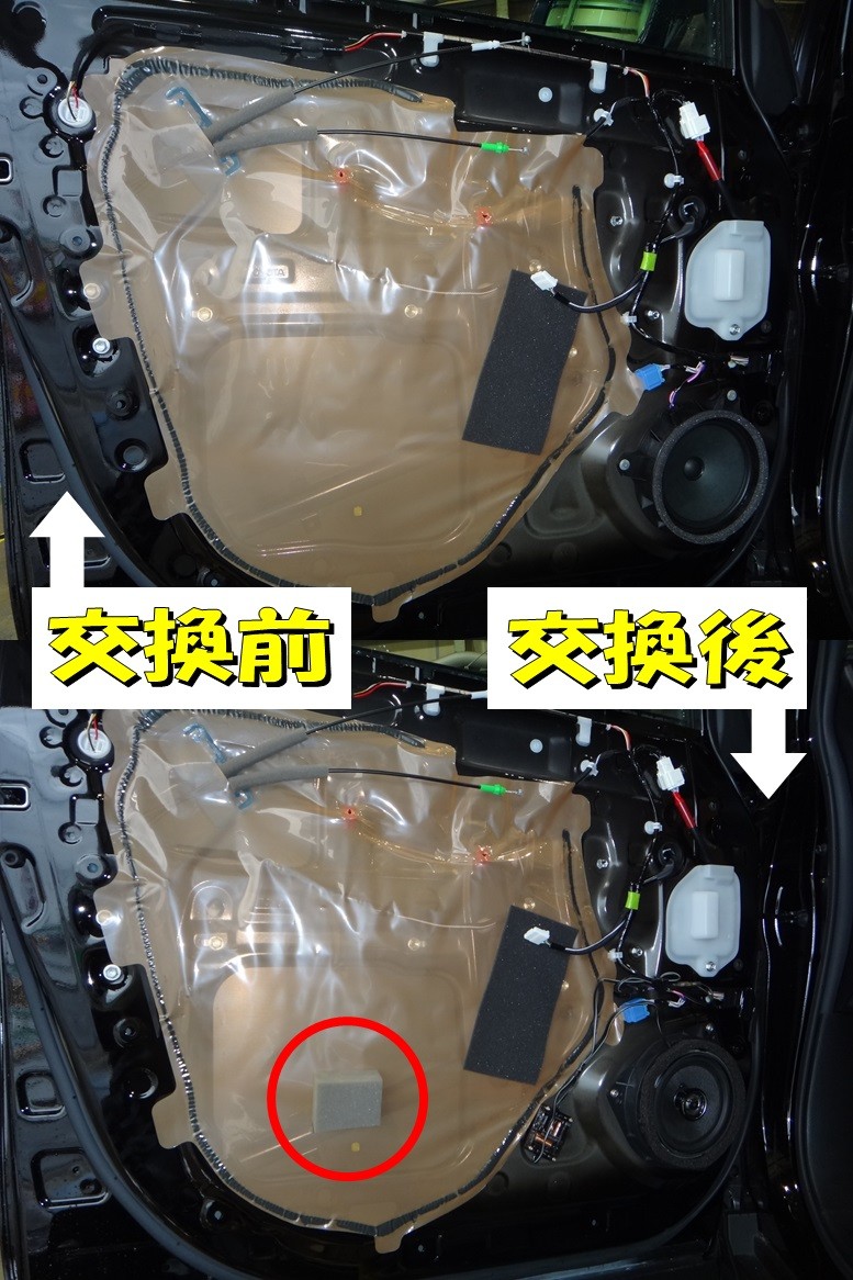 密着させてから、外からドアパネルを叩いてみると打音が変わったのでOKかな?