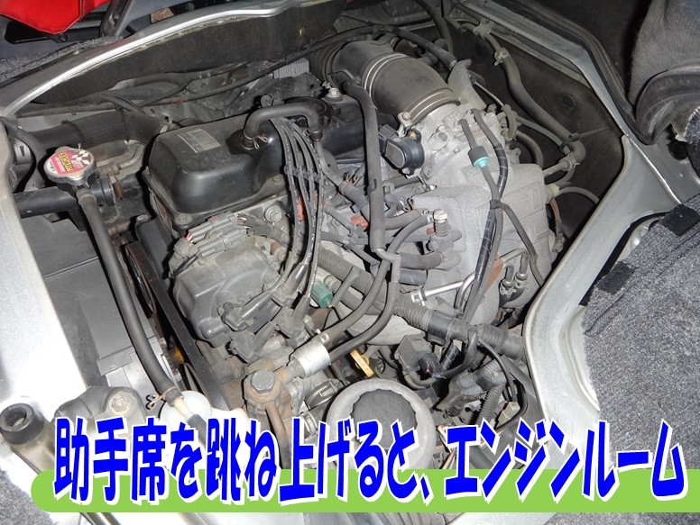 このように、助手席シートパネルをポップアップすると、エンジンにアクセス可能