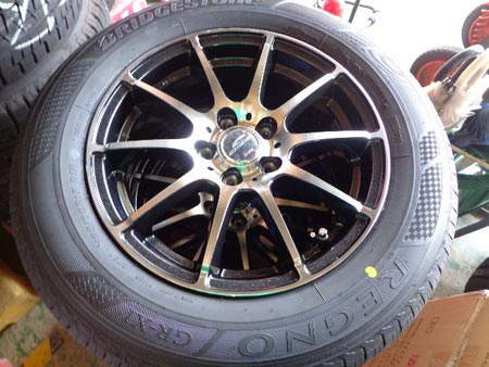 プリウスでご予約のアルミホイルとタイヤを男性スタッフ~にセットしてもらいました。