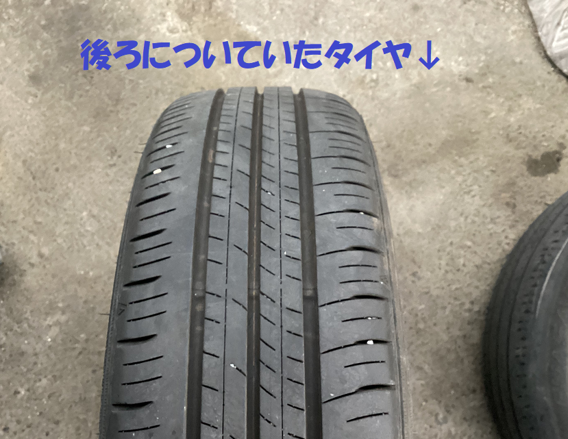 ↑交換する前の前についていたタイヤと後ろについていたタイヤです。