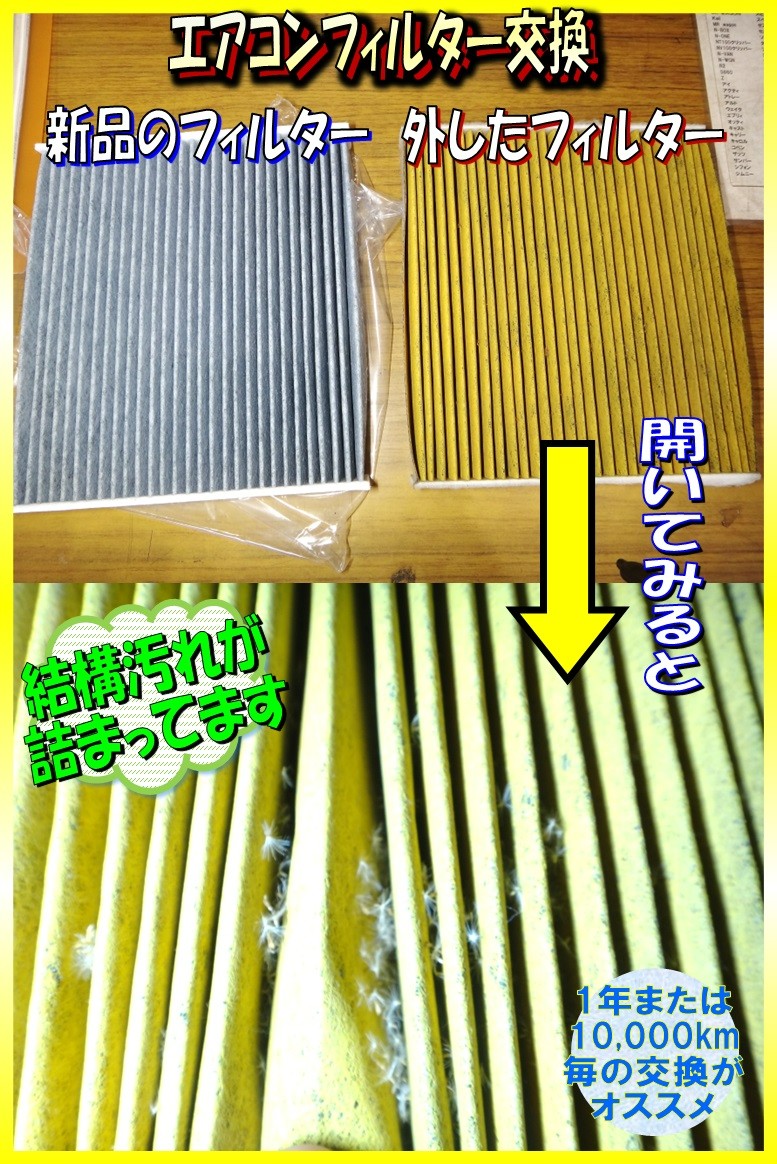エアコンフィルターは、1年または10,000km毎の交換がオススメです。
