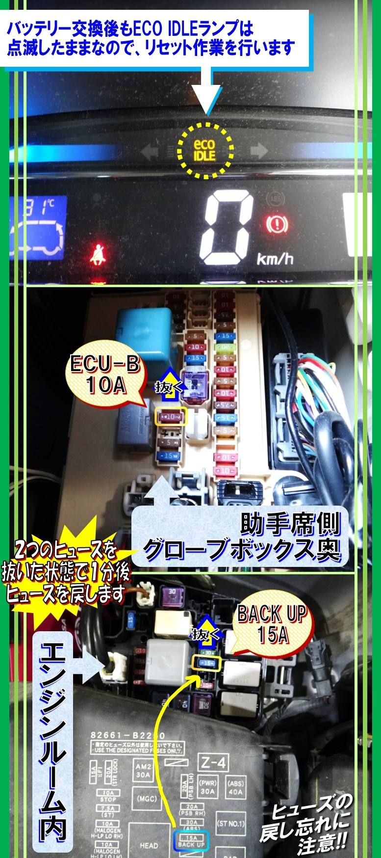 今回の車両では、2つのヒューズをしばらく抜いておくだけでOK