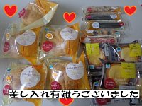 こんにちは、.関口です。 甘~いスィ-ツに目が無い私がルンルンになる差し入れを頂きました♪ 当店でタイヤクロ-クをご利用頂いているお客様に頂きました。 私の好きな物ばかりです(*^_^*) 今日の休憩の楽しみが増えました。 後でコーヒーと共にティ-タイムで頂きますっ! S様、有難うございまし...