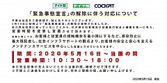 5/16(土)より 当面の間、営業時間を変更させていただきます