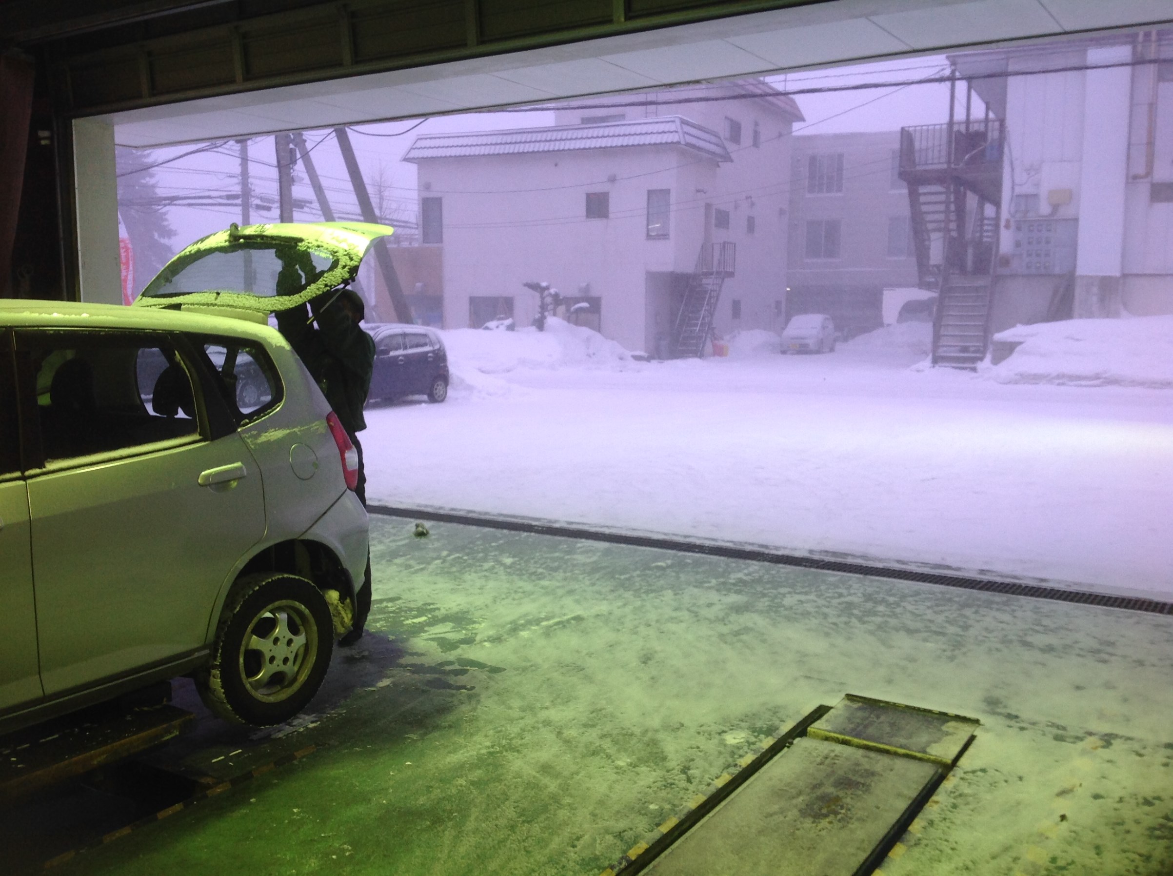 雪がPITに吹き込んできています。