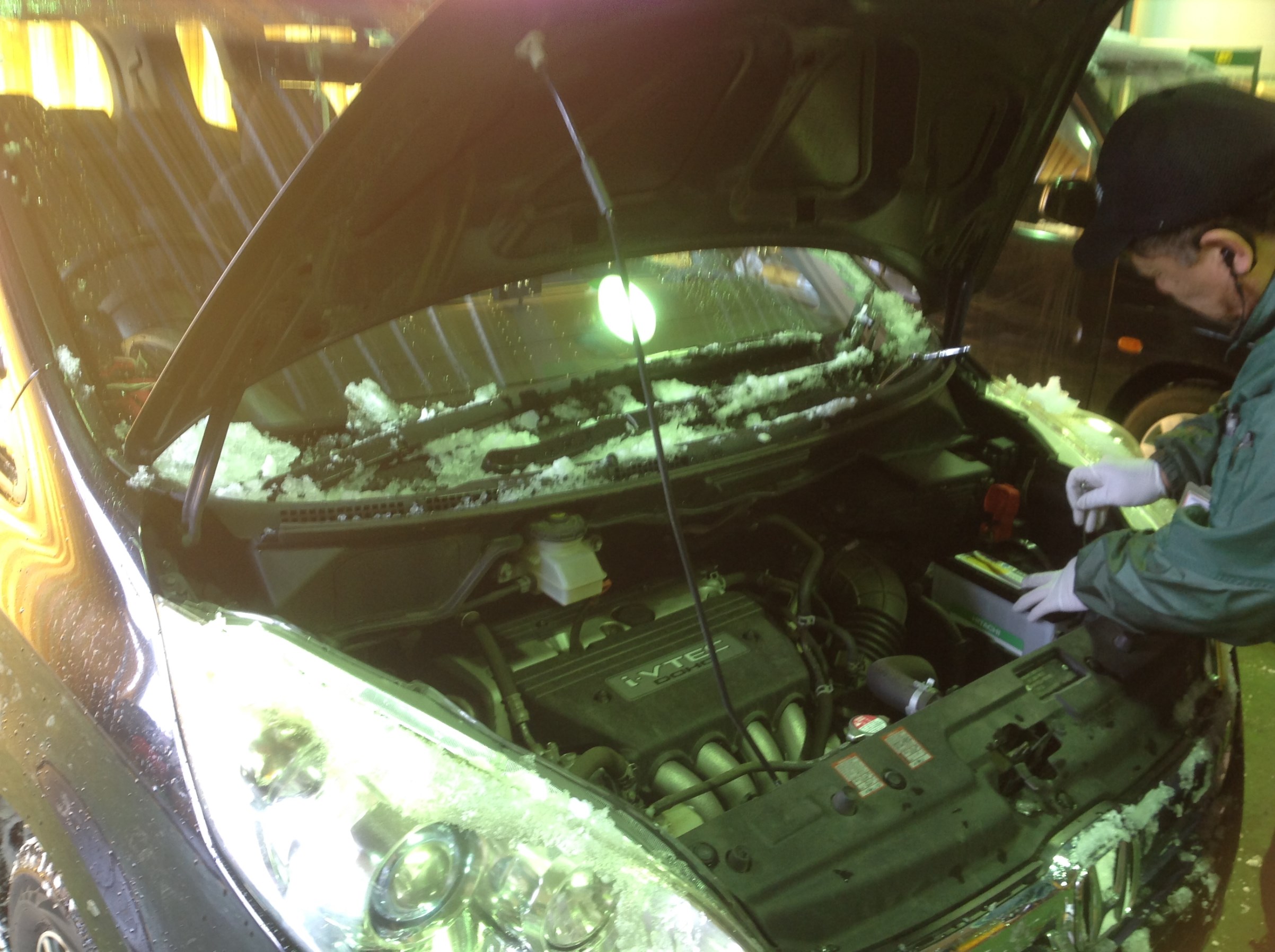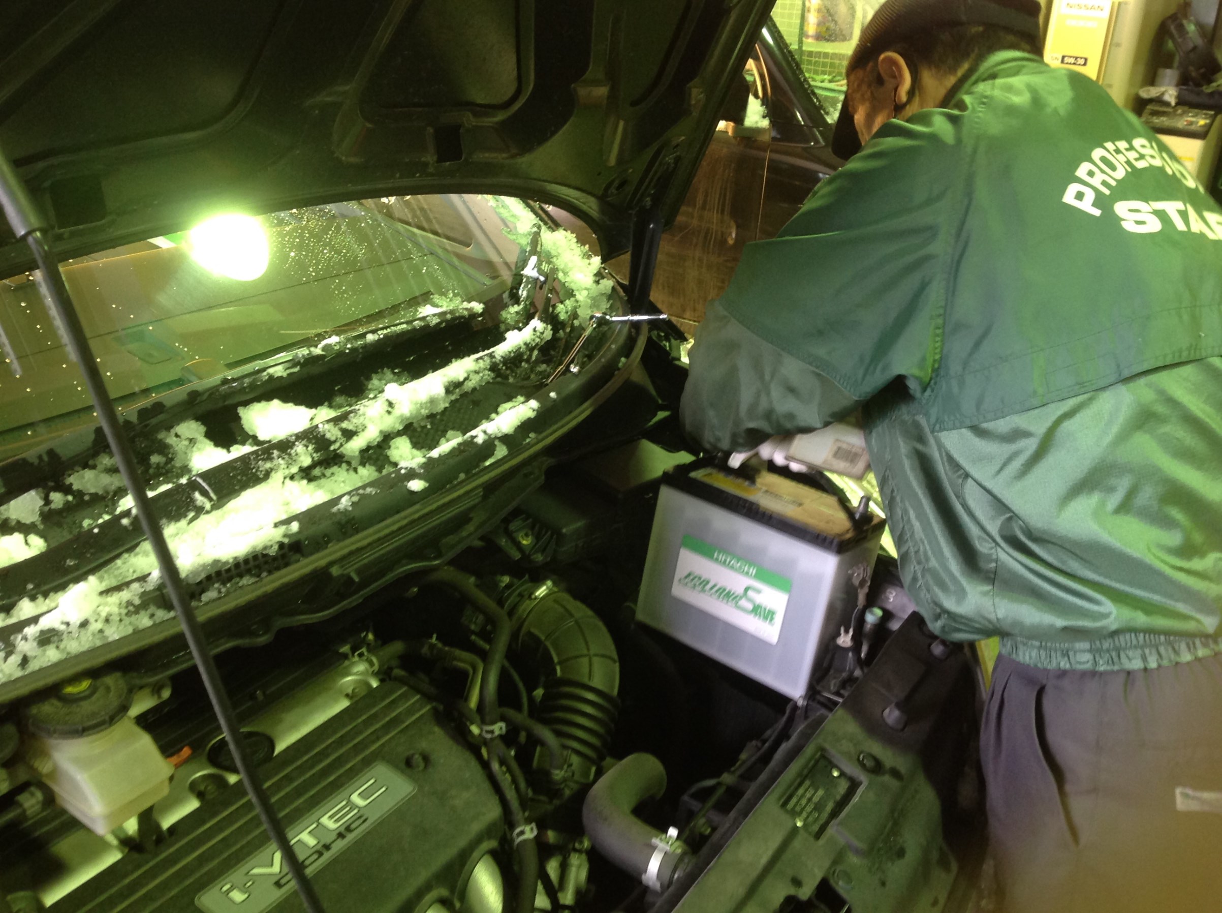 本日も寒さのあまりバッテリーが上がってしまい、交換する場面がありました。