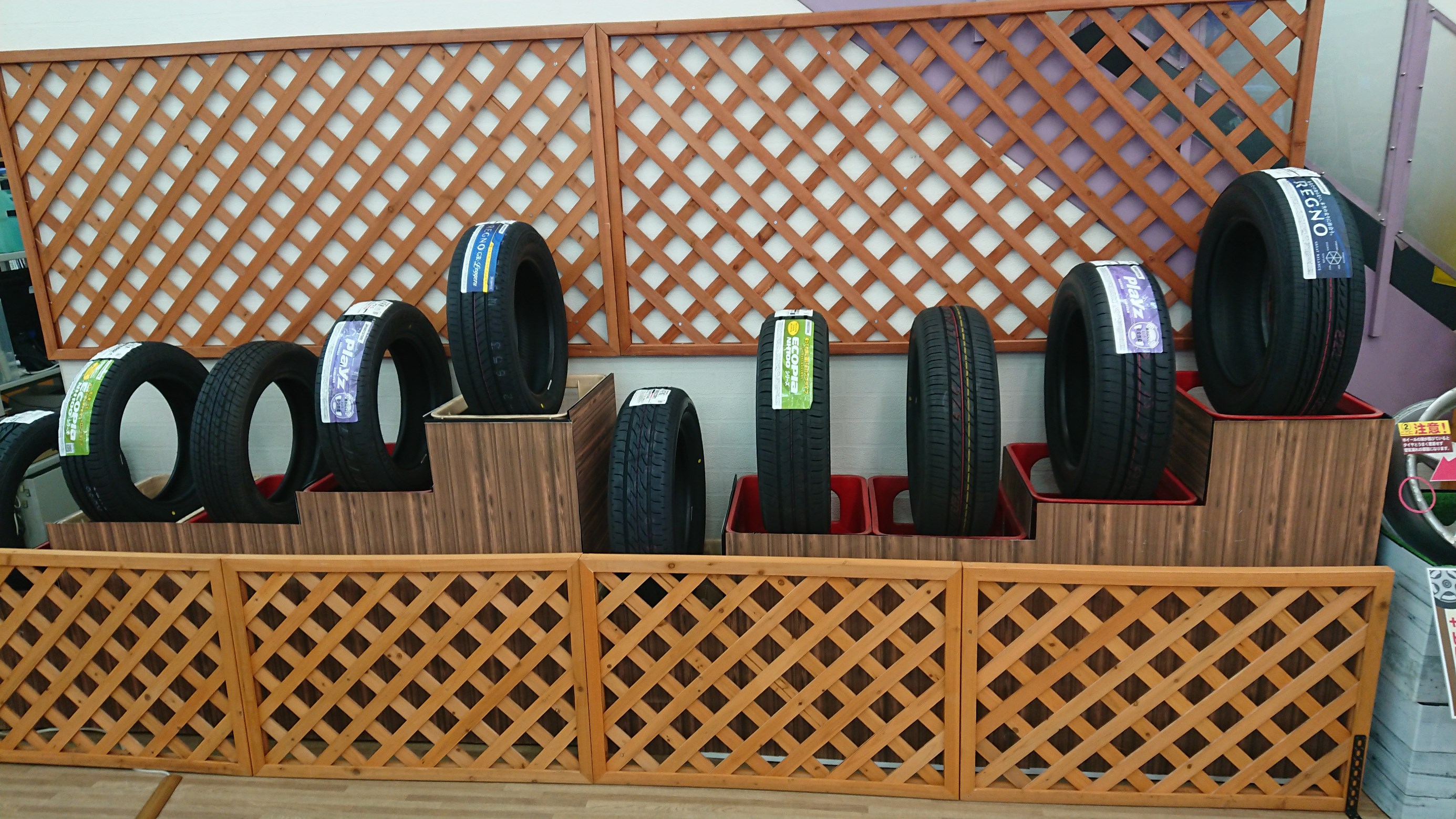 お客様がタイヤを選ばれる際には、見やすく、種類もわかり易くを目指して展示を変更中です!!