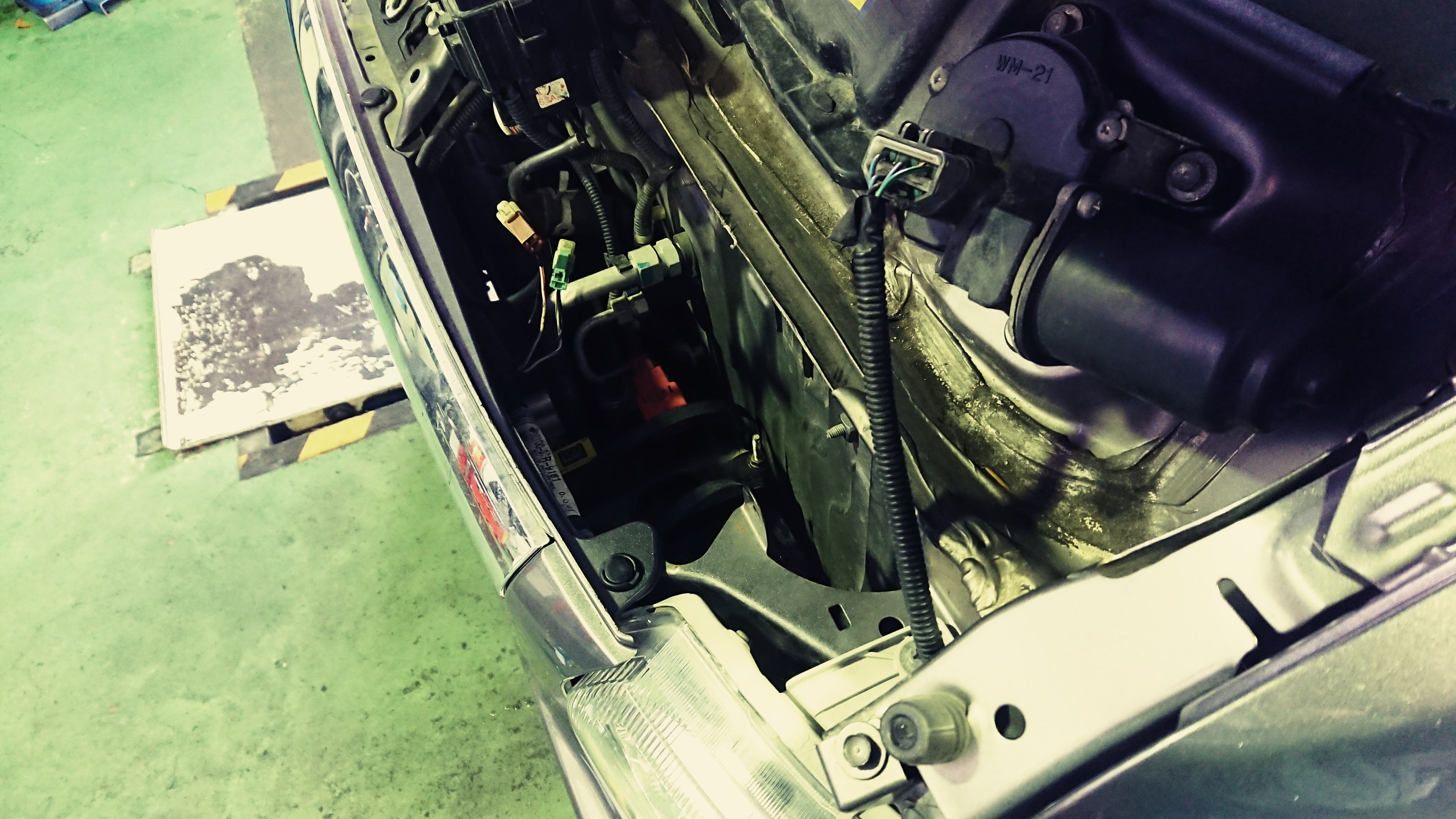 バモスは奥の方にバッテリーがある為、ウォッシャー液のタンク等を外して作業です。