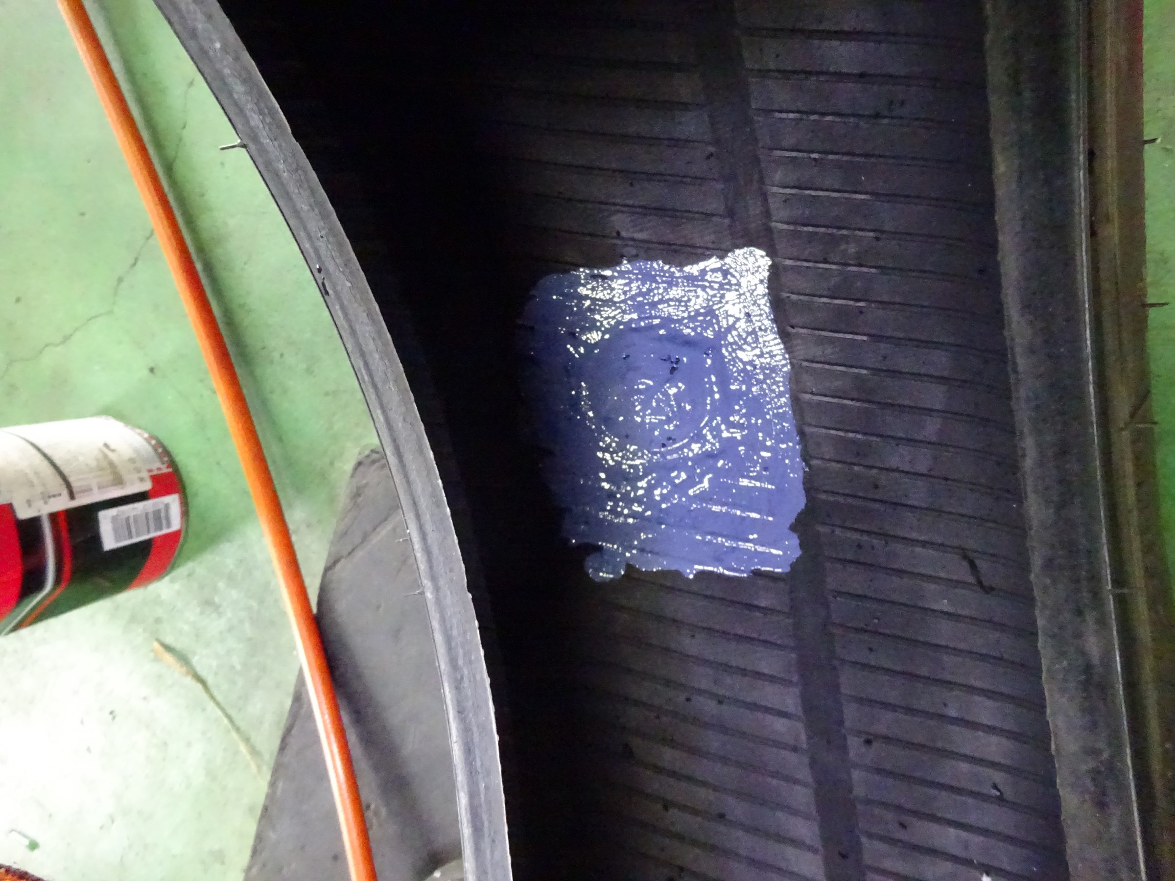 次にタイヤの内側から修理します、(内部を点検し安全を確認)