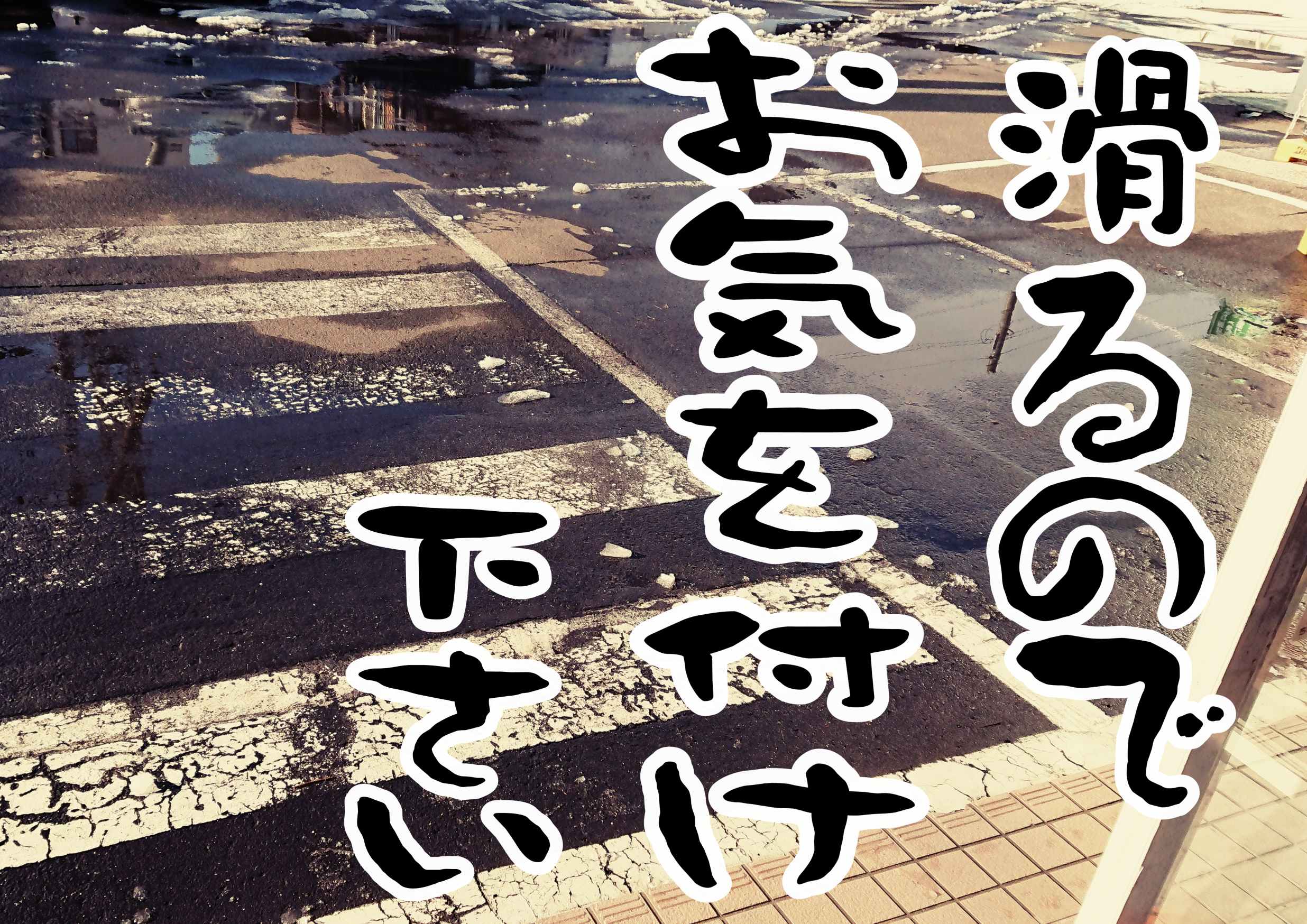 雪がないから油断して横断歩道を渡っていると、白線の部分がとてつもなく滑るパターンを