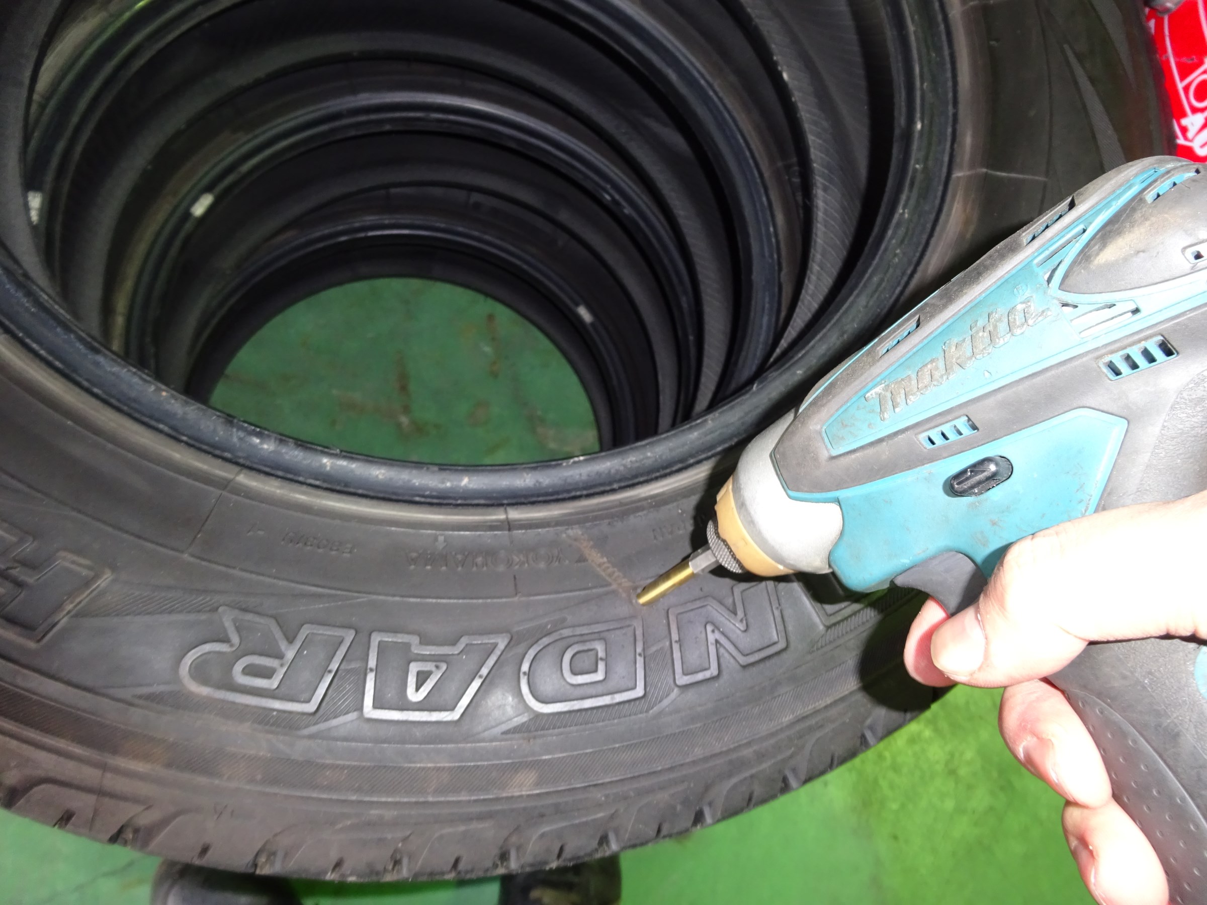 そんな中当店では、お客様の廃タイヤとして受け取ったタイヤに穴を
