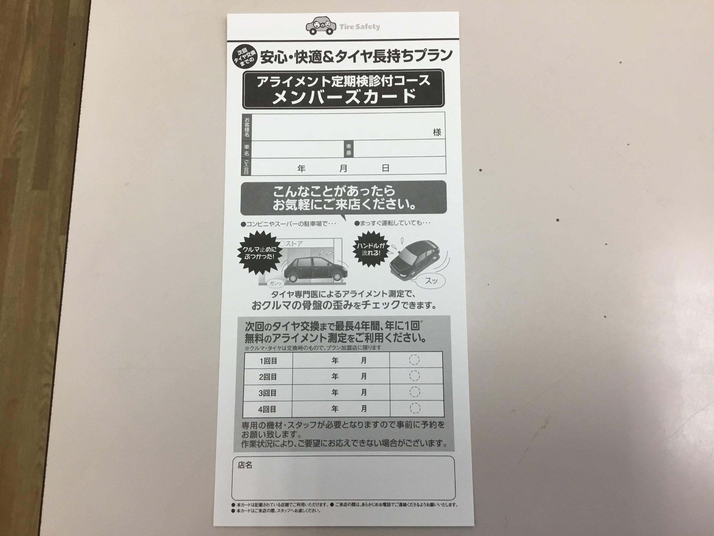 更にアライメントの長持ちプランにご加入頂いた場合にも記録が出来る別紙も有りますので、