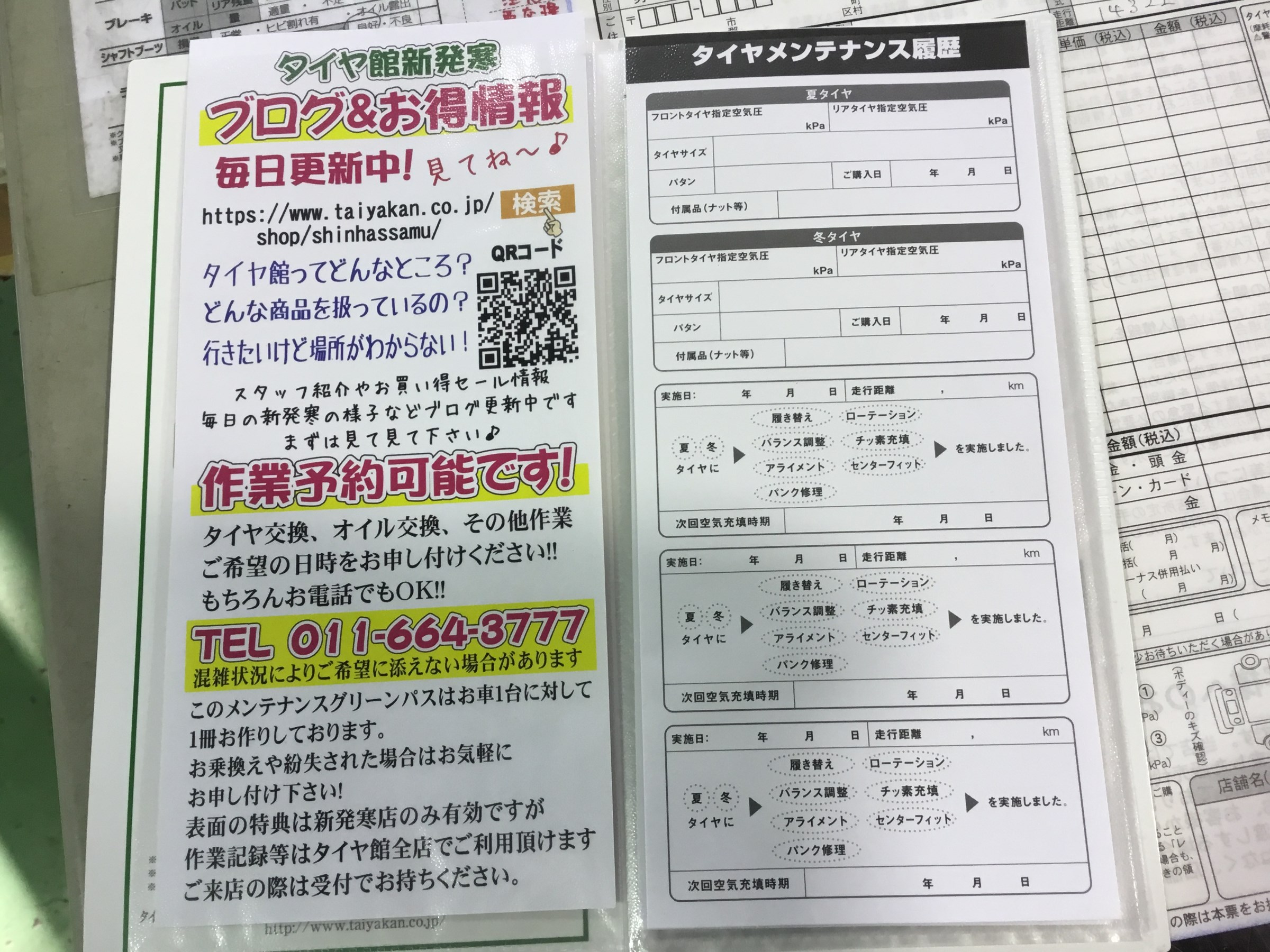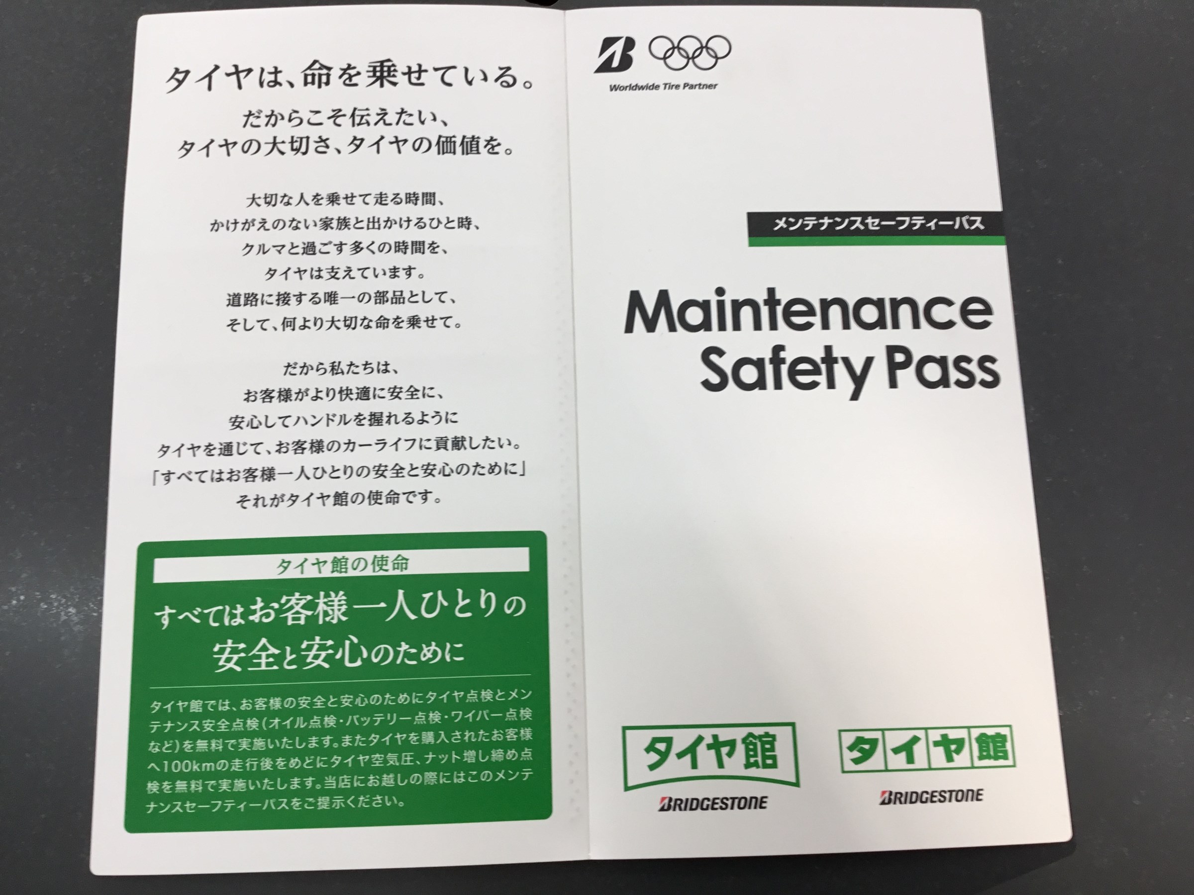 その際にタイヤ館ではメンテナンスセフティーパスをお作りし、今後のメンテナンスの
