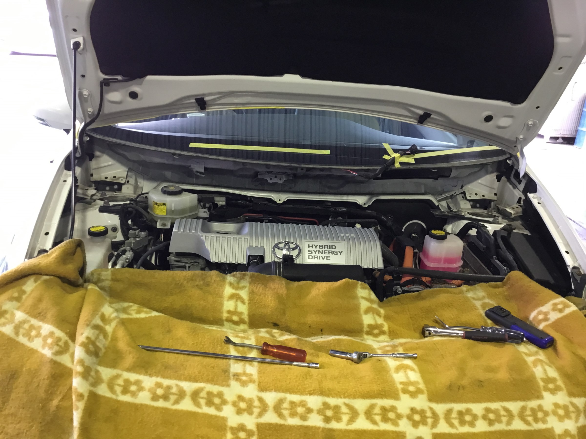 ワイパーも取り外しです、そうしないとショックアブソーバーの取り外しが出来ません。