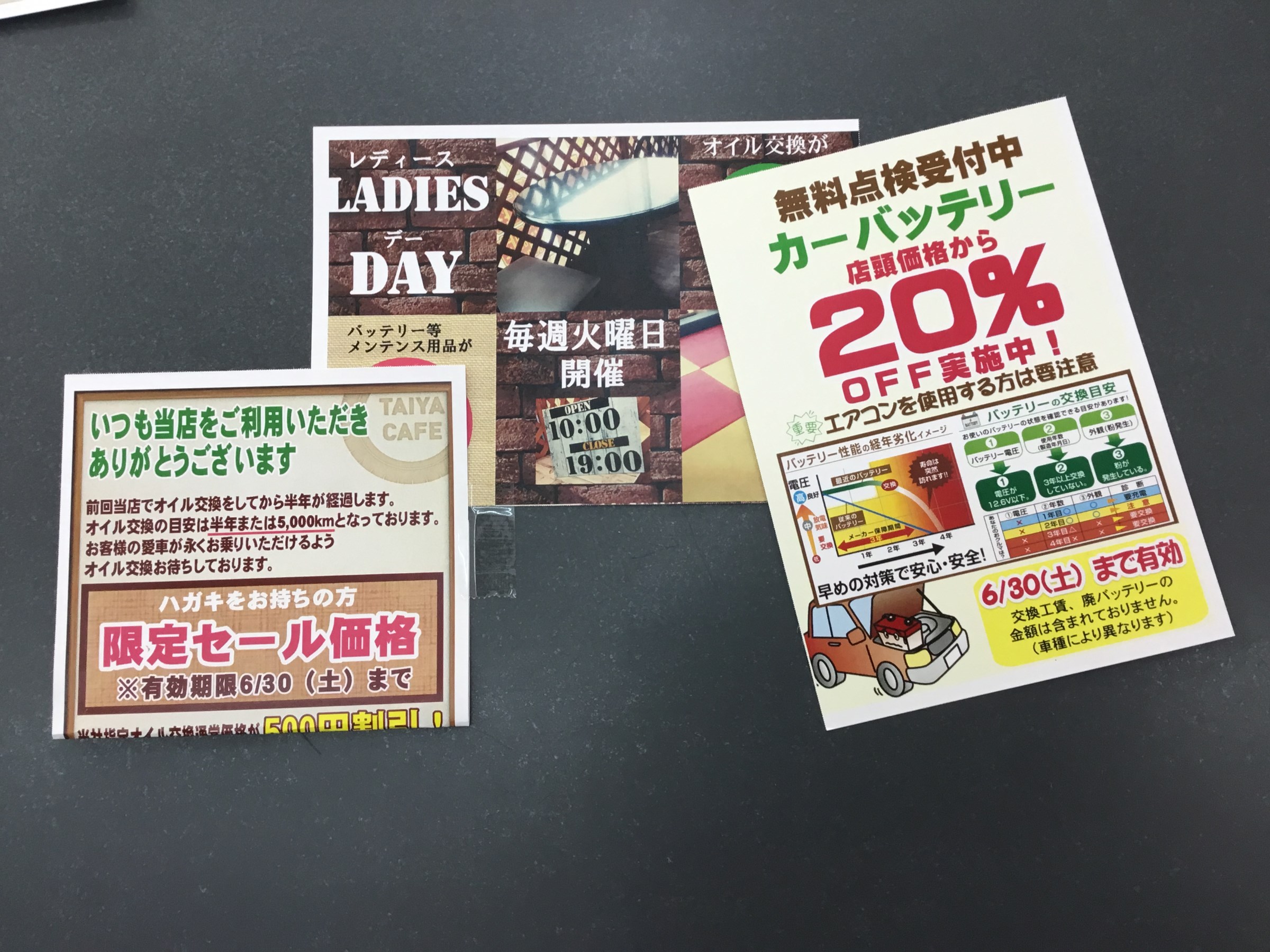 いつもは「エンジンオイル交換」だけとのお客様も今月はバッテリーなんかもお安くご提供いたします。