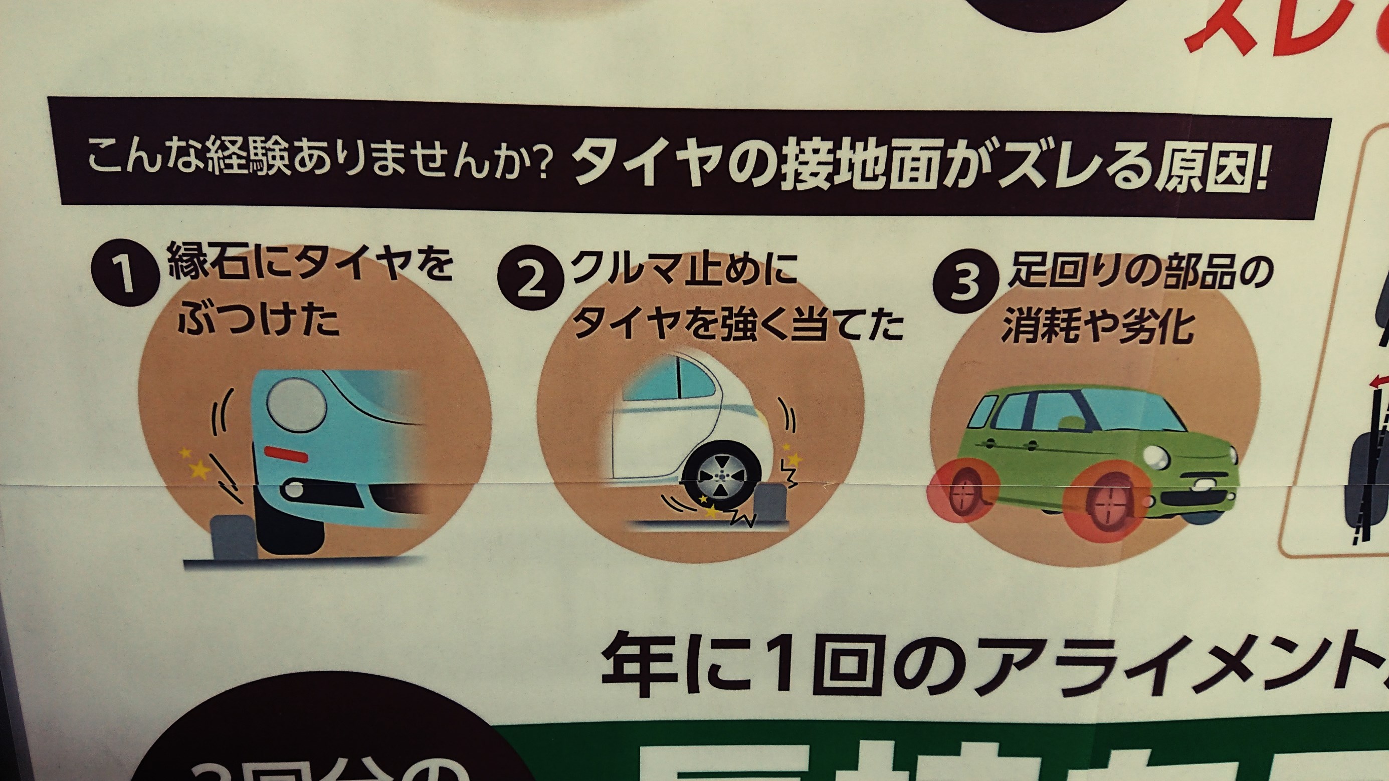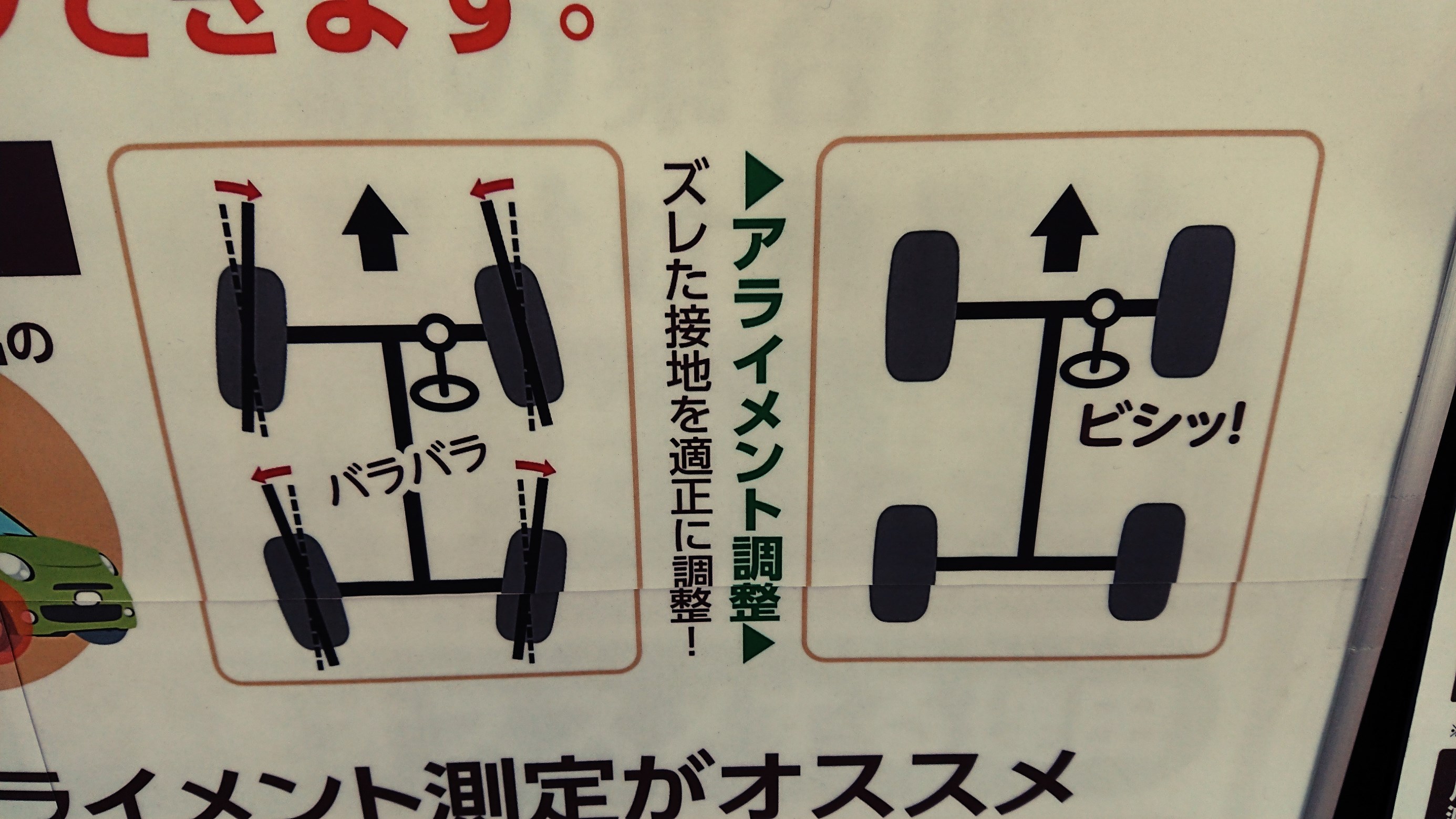 これらがズレてくるとタイヤが異常摩耗したり燃費の悪化などに繋がります。