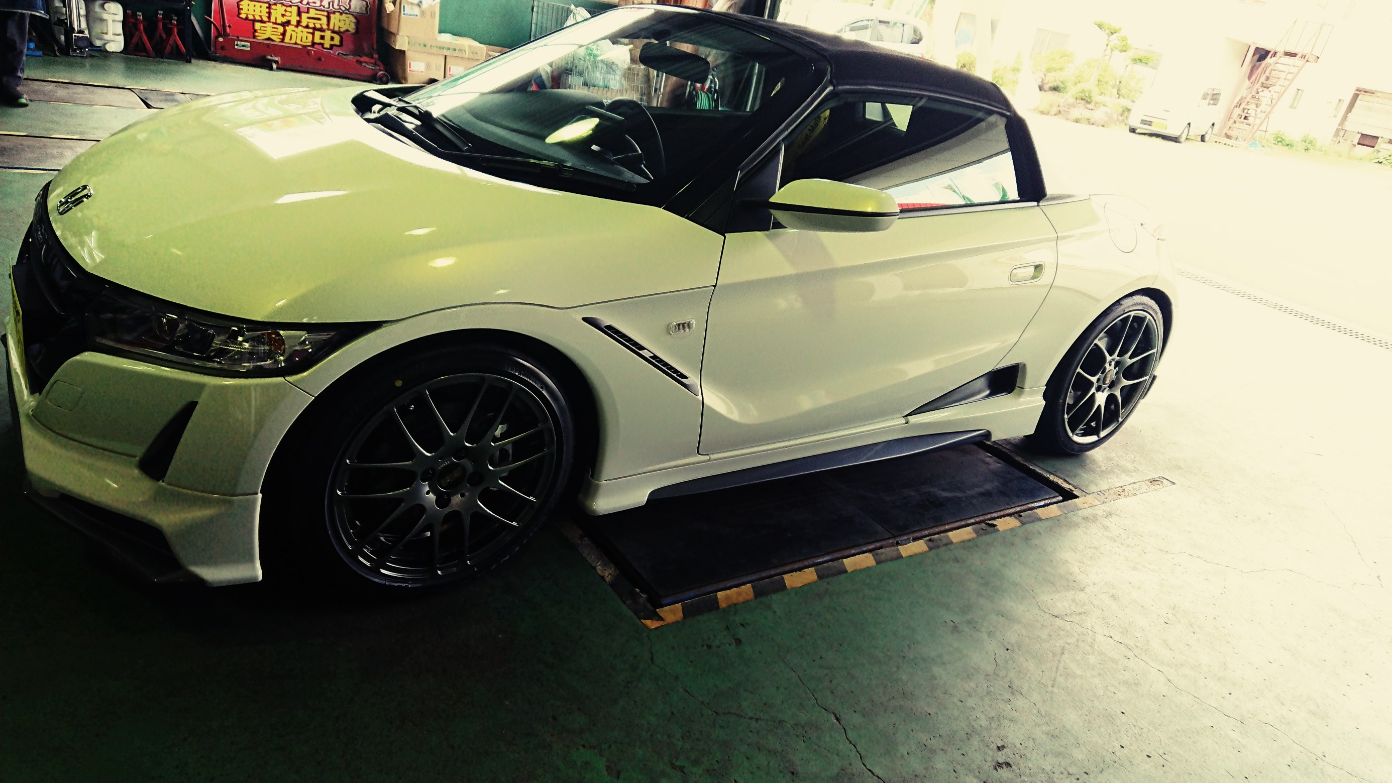 このS660は去年の秋頃にTEINの車高調もお取付けさせていただいているので、車高もバッチリです。