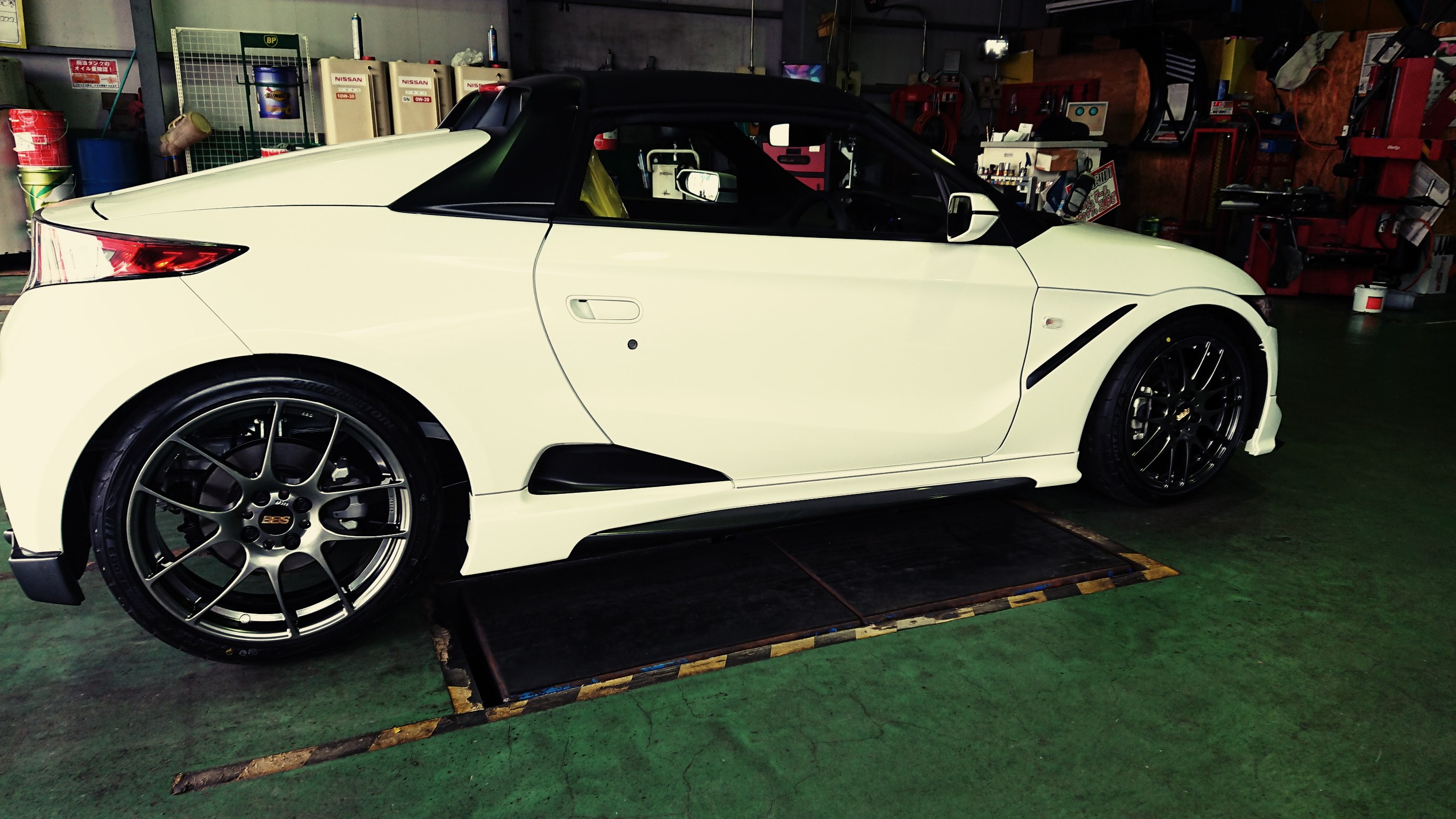 本日はホンダ「S660」に春くらいからご注文いただいていたBBSホイールをお取付けさせていただきました。