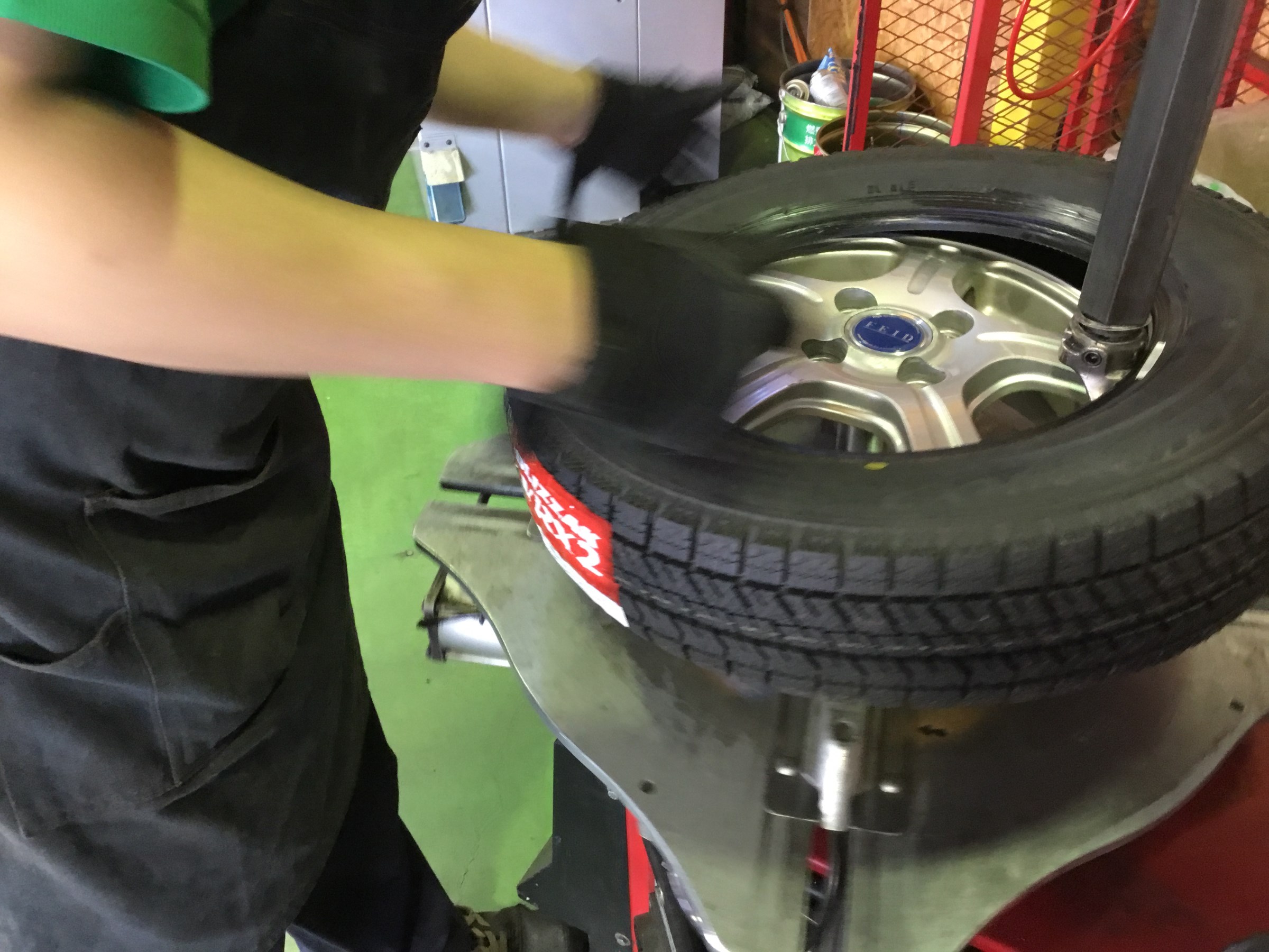 セール前ですがスタットレスタイヤお持ち帰りでの作業の一コマです。