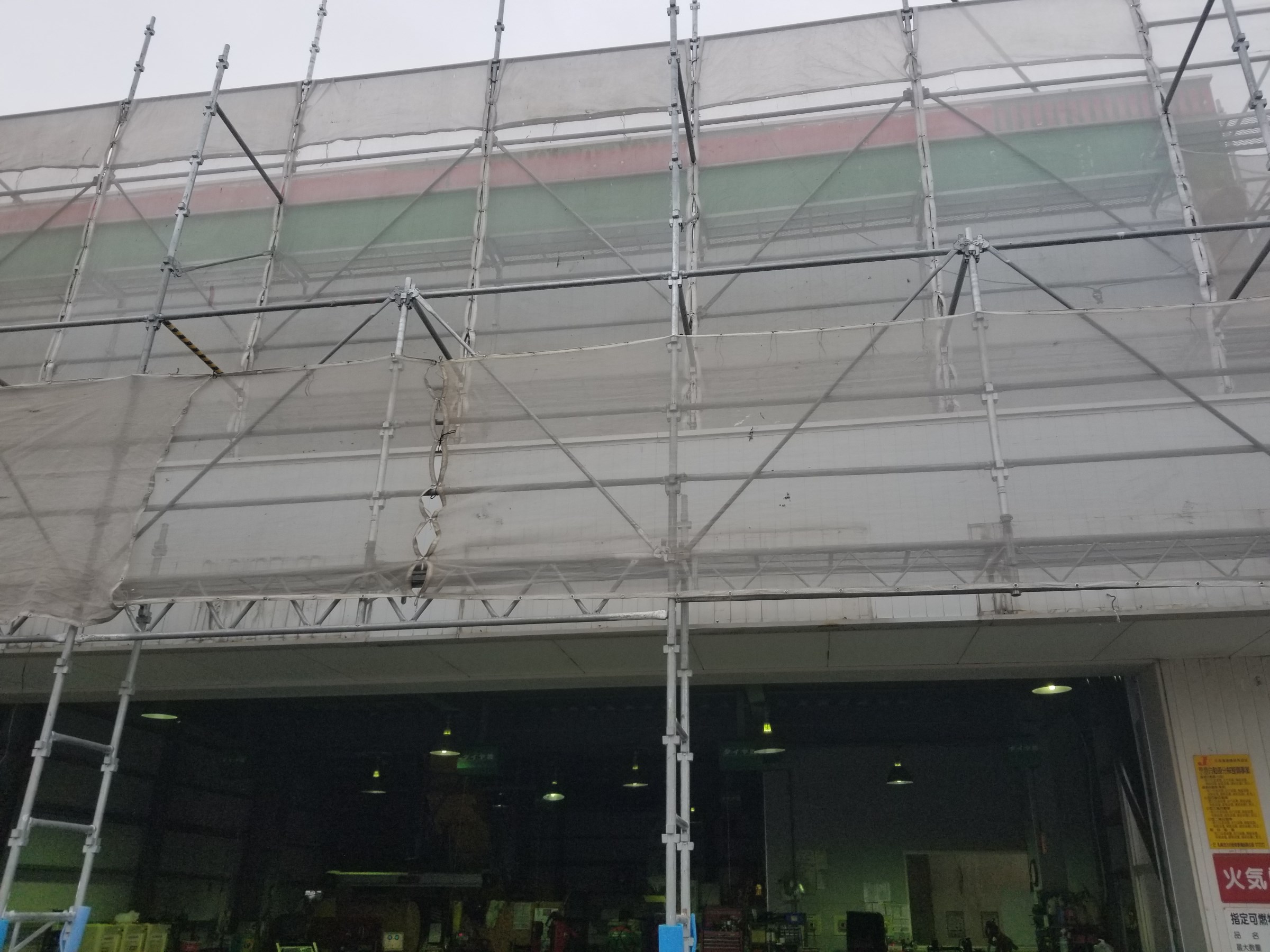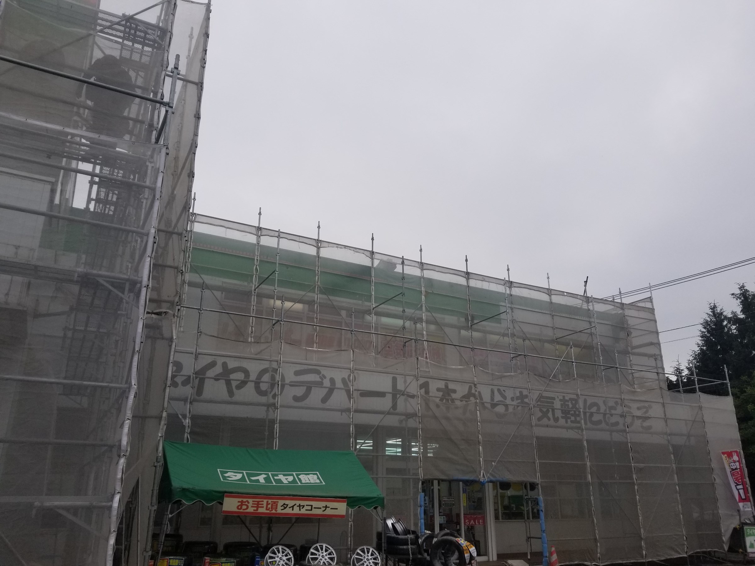 外の足場が出来て、シートもかかってしまってもうタイヤ館とは全くわかりません(笑)