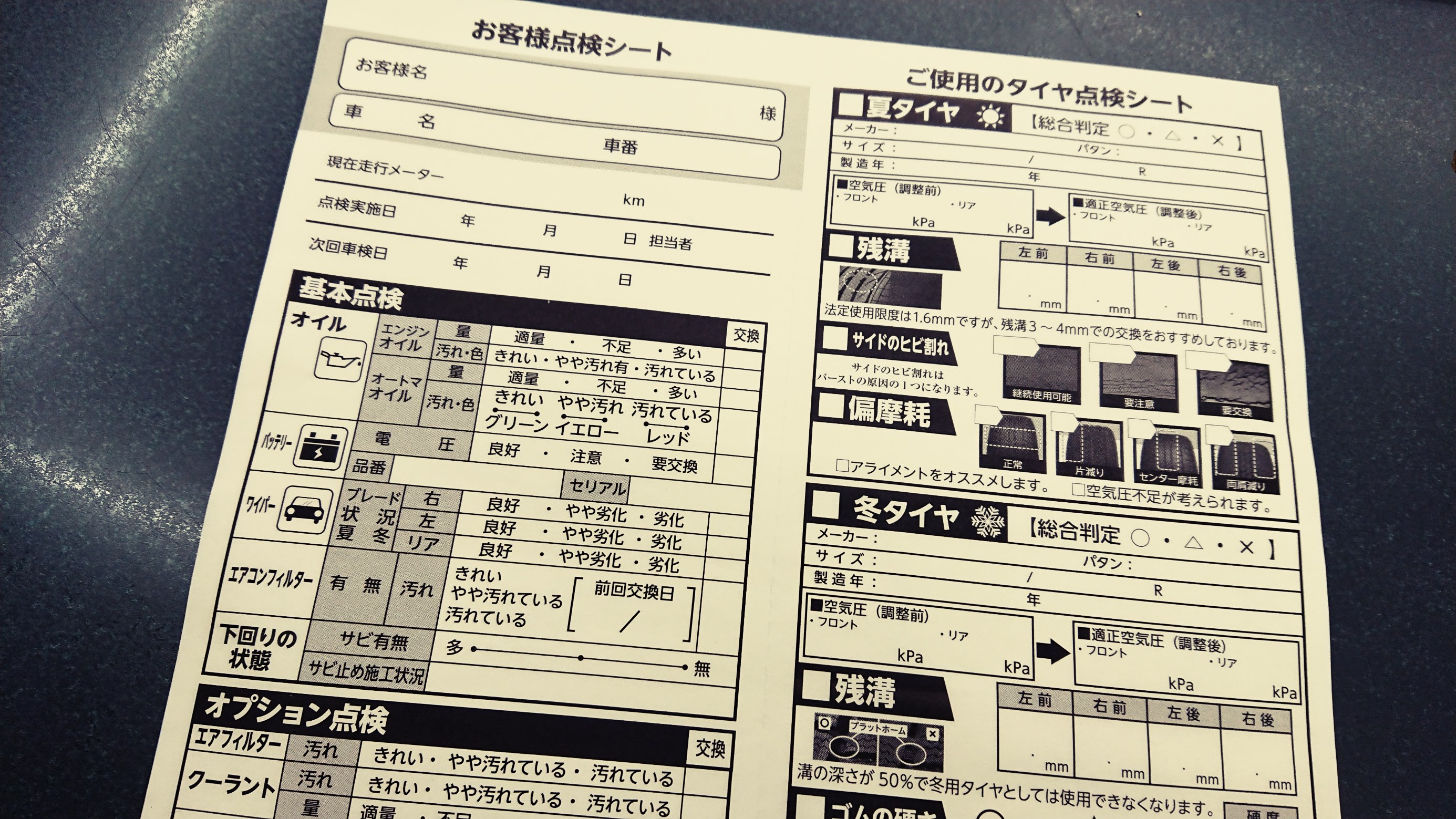 点検結果はタイヤ館全店でお渡ししている「メンテナンス セーフティ パス」という