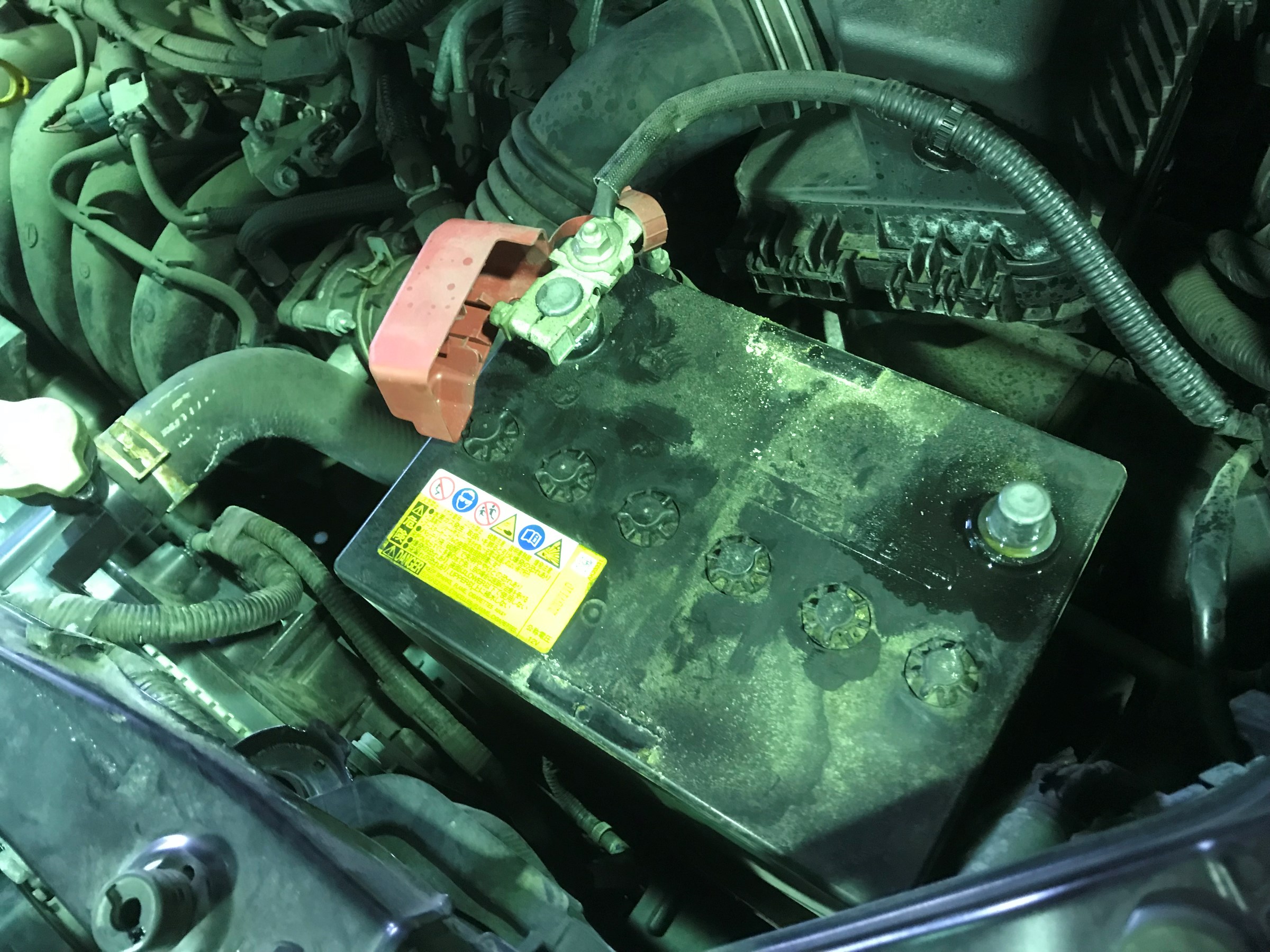 バッテリー液が気化して、バッテリーの蓋からちょっとずつ出ちゃうワケです。