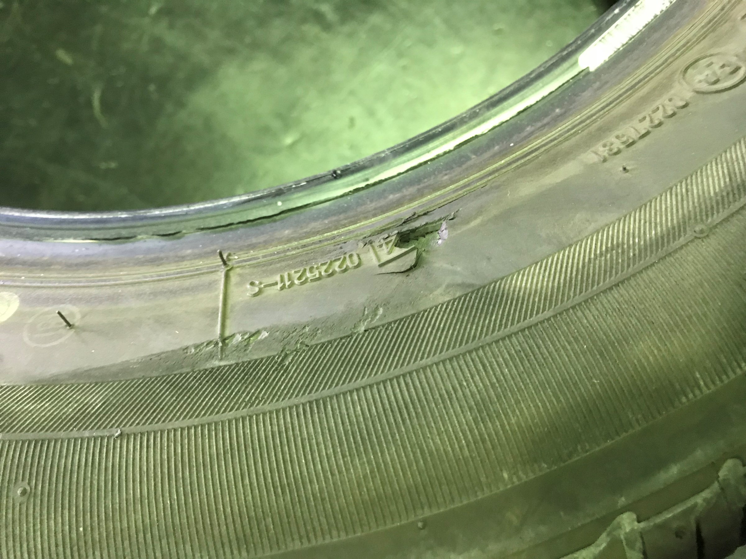 そしてコチラはタイヤのサイド部分に穴が開いてしまった画像です。