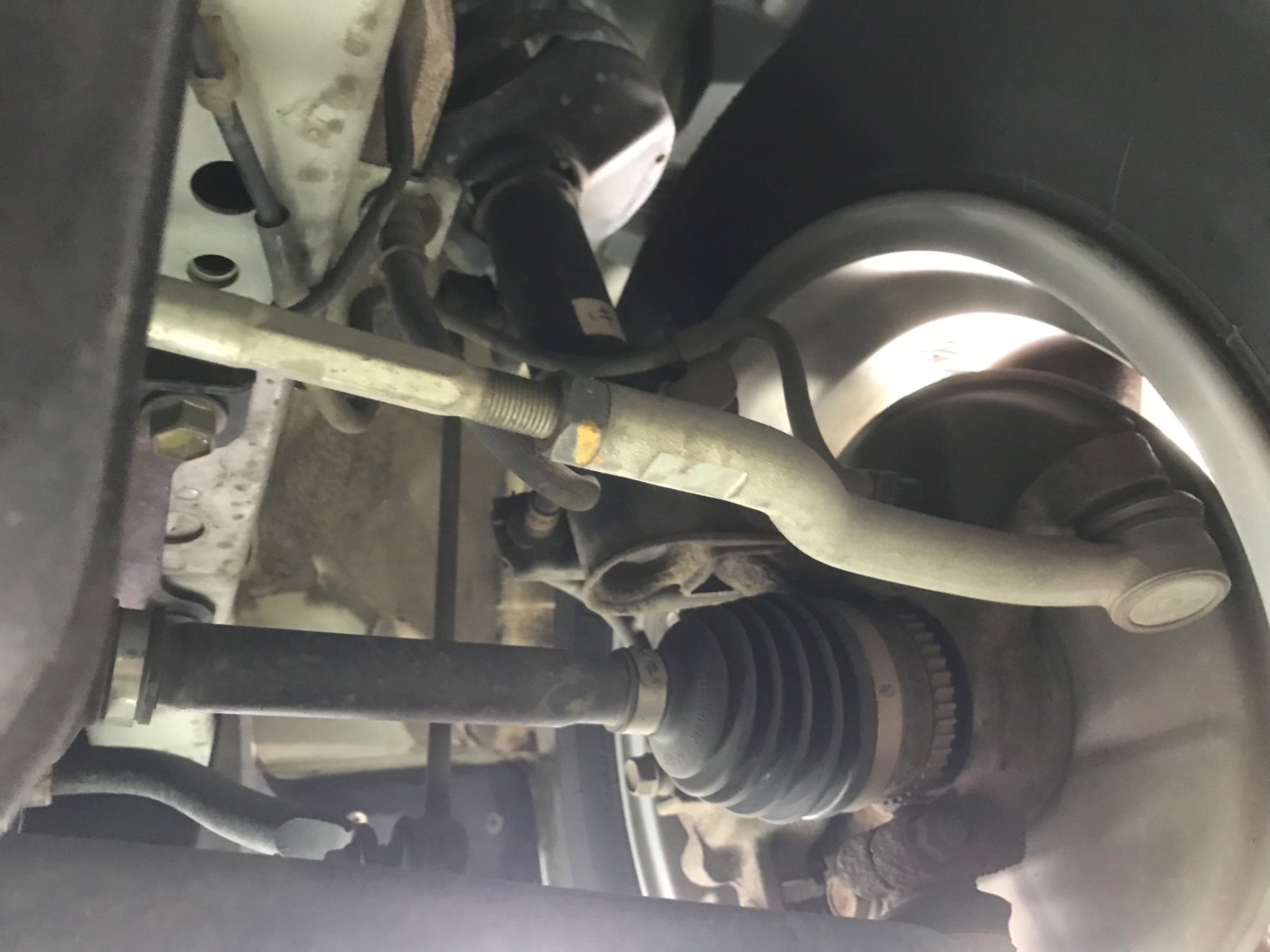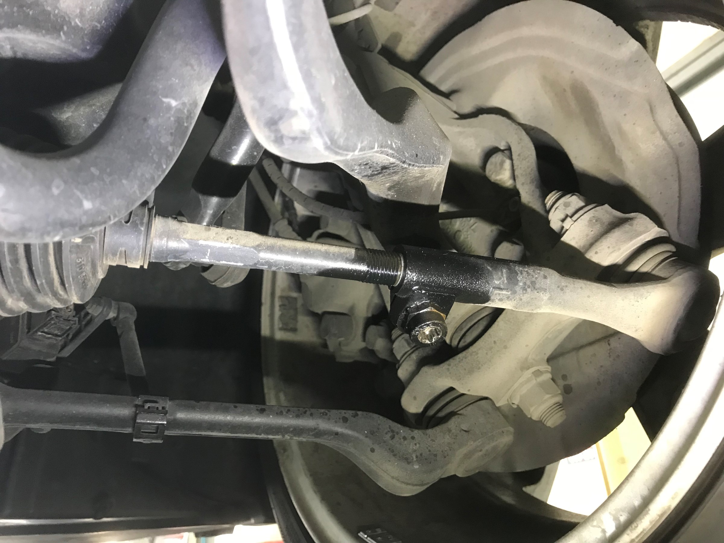 国産車と違い、調整するタイロッドを固定している部分がこんな形をしています。