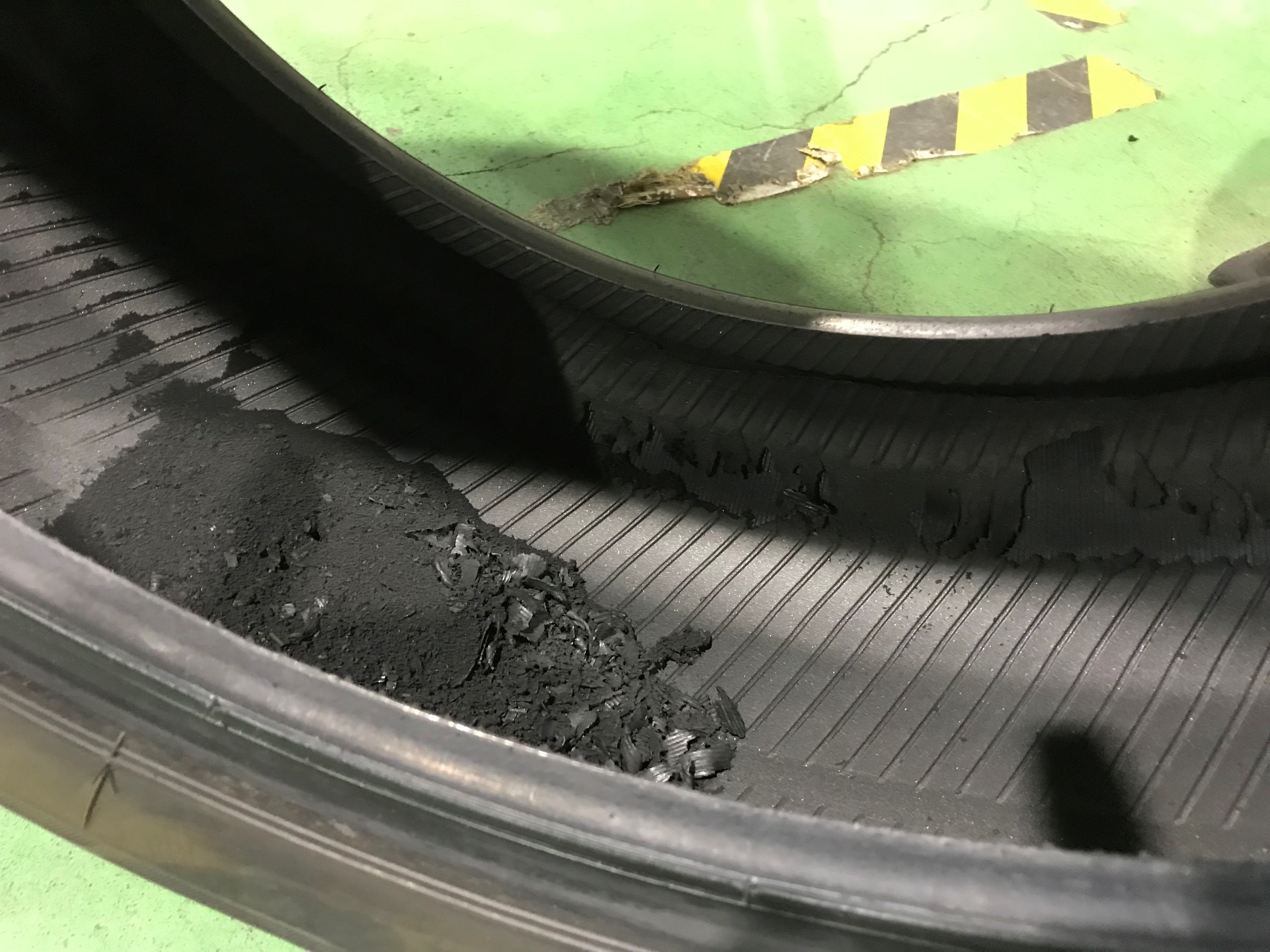 コチラはパンクしたまま走行したタイヤです。