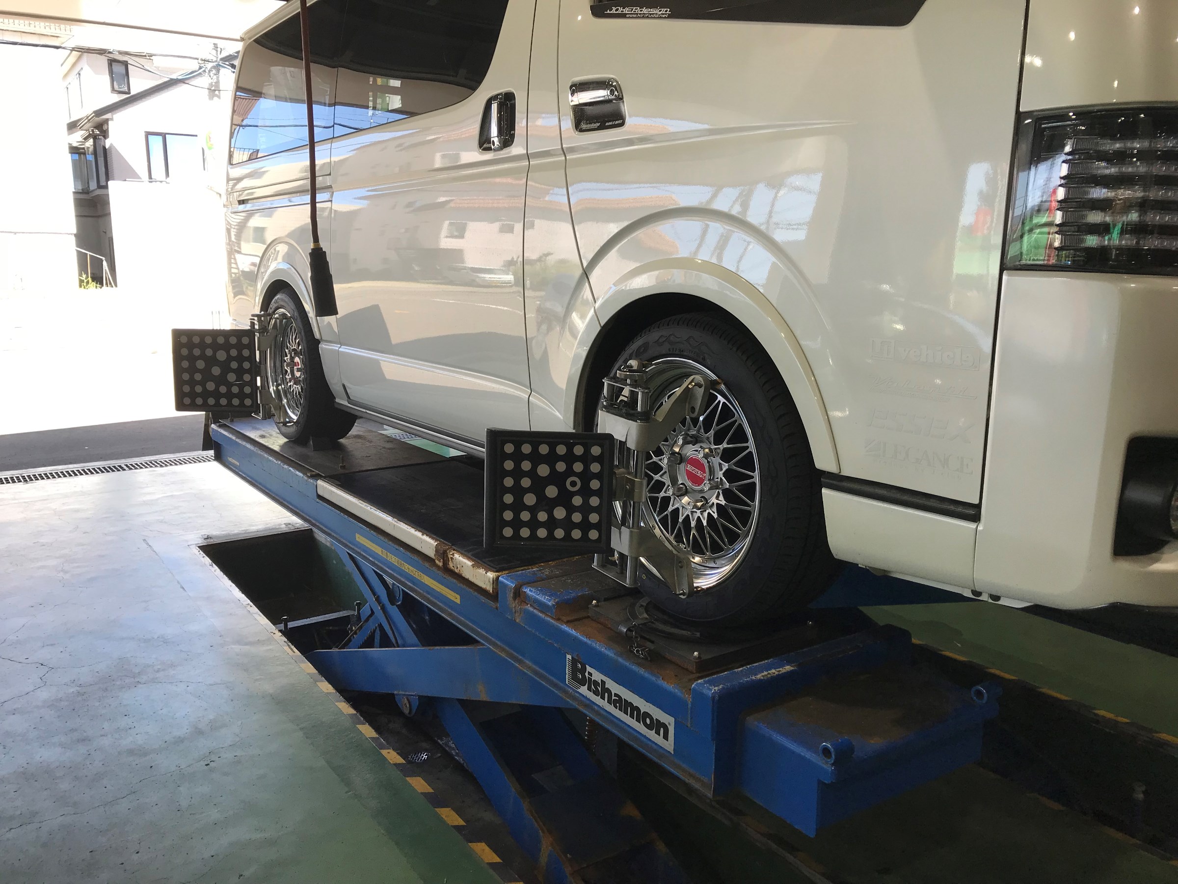 コチラはハイエースの「アライメント調整」。