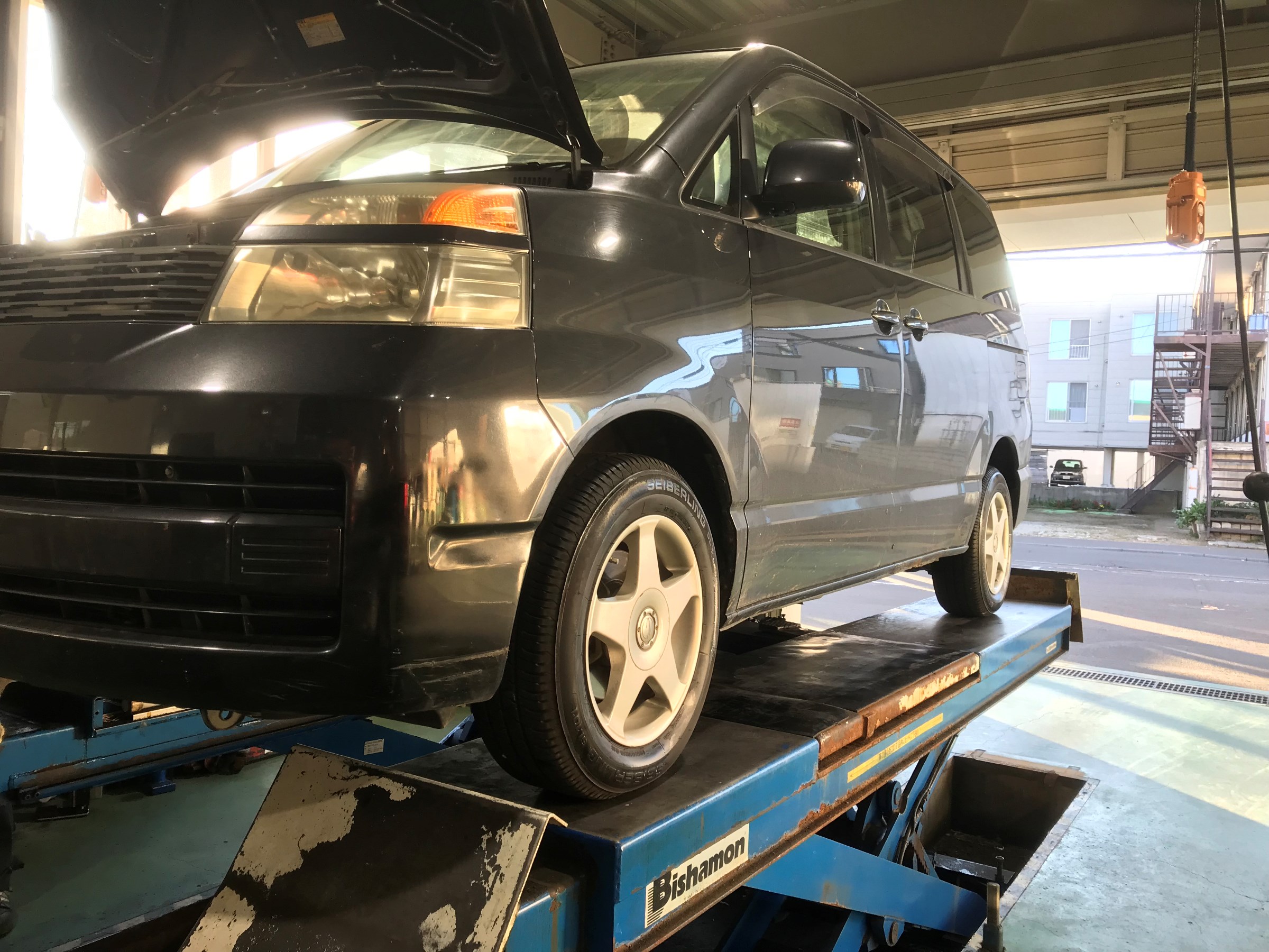 整備工場さんで足回りの部品交換をしたそうで、そのまま当店で調整作業。