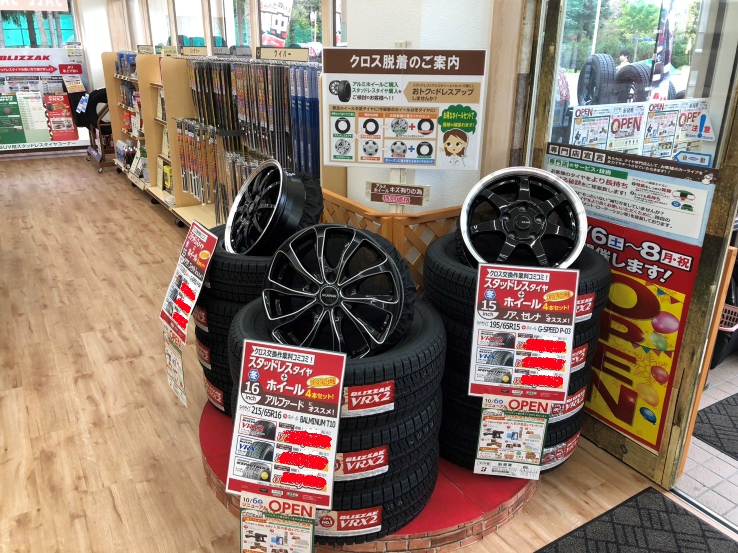 在庫処分 商品入替 セール タイヤ交換 脱着 組替え バランス アライメント エンジンオイル