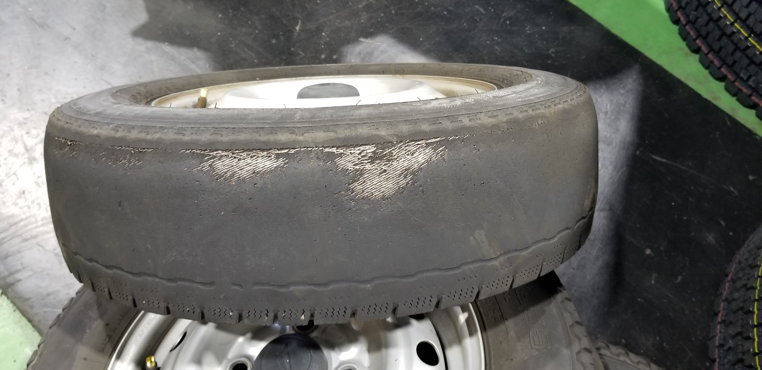 タイヤの中のワイヤーが出て来てしまっております!!