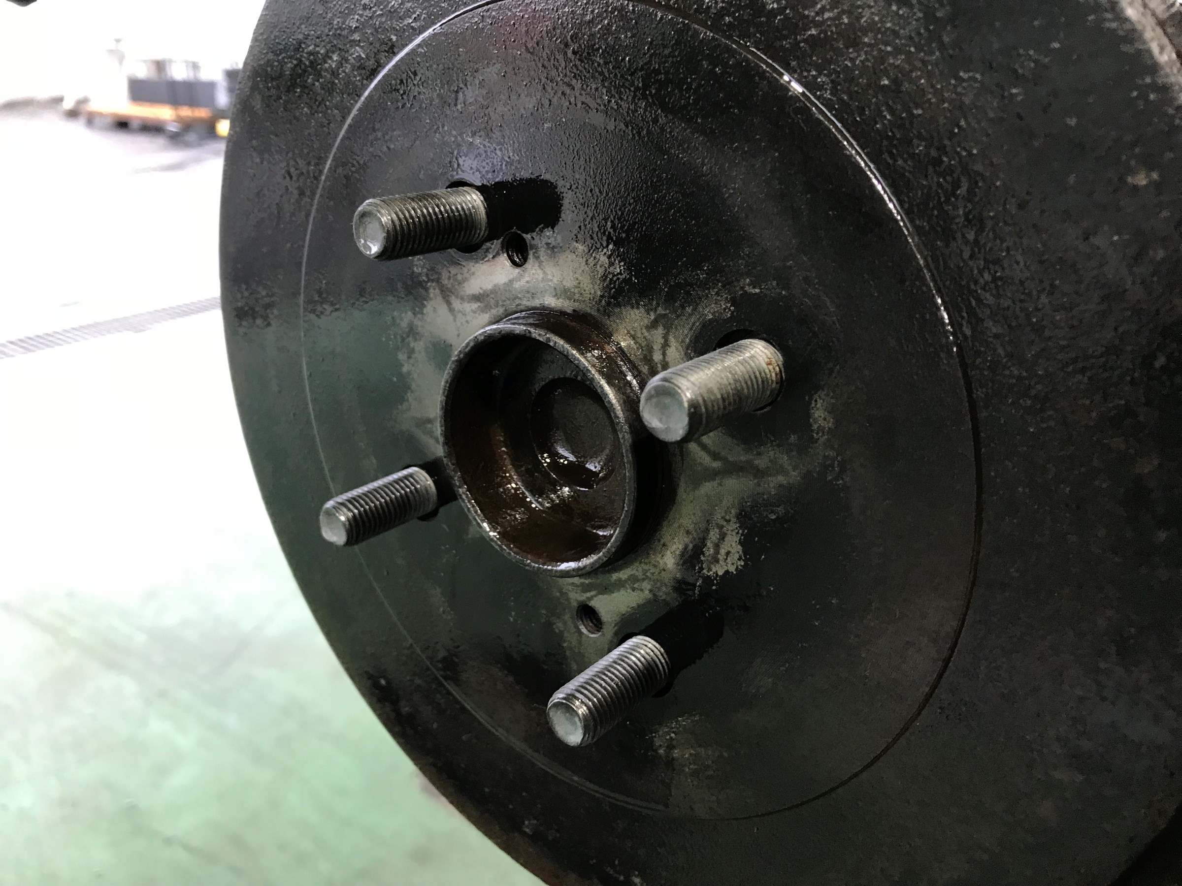 上の写真はタイヤがつく部分(ハブ)なのですが、ブレーキに近いためとってもサビやすいんです・・・(^_^;)