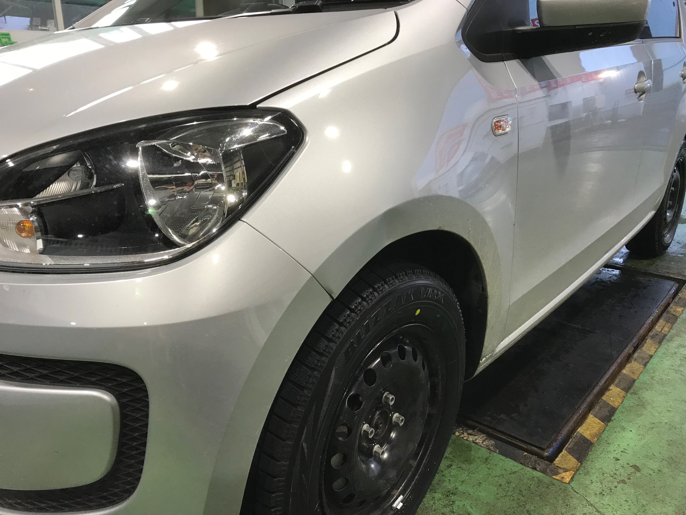 タイヤの角度が一定以上ズレていると、スタッドレスの効き目に影響も・・・(-_-;)