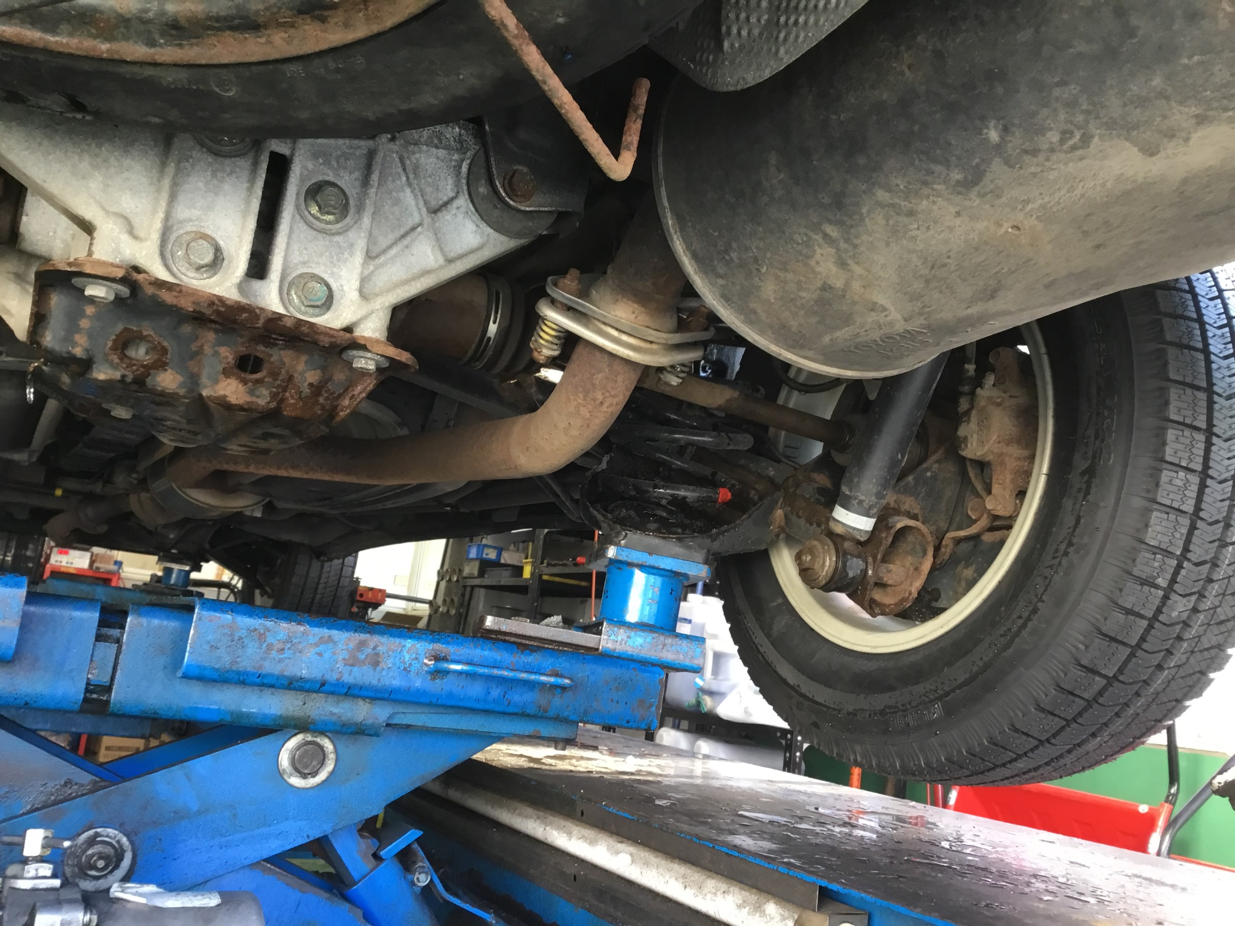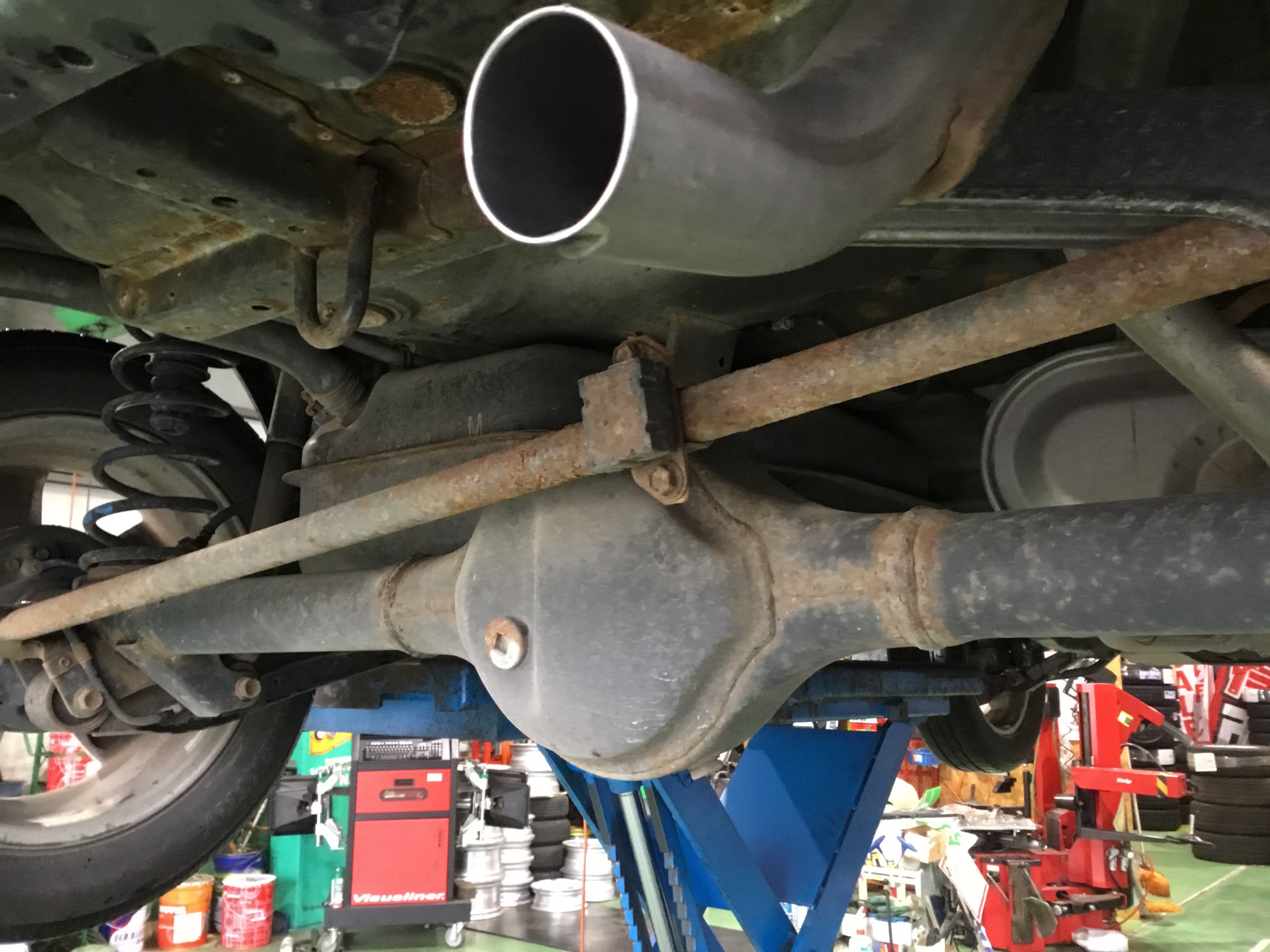 当店では下廻り全体塗装の他にマフラーのみの防錆も実施していますので下廻り状況によって