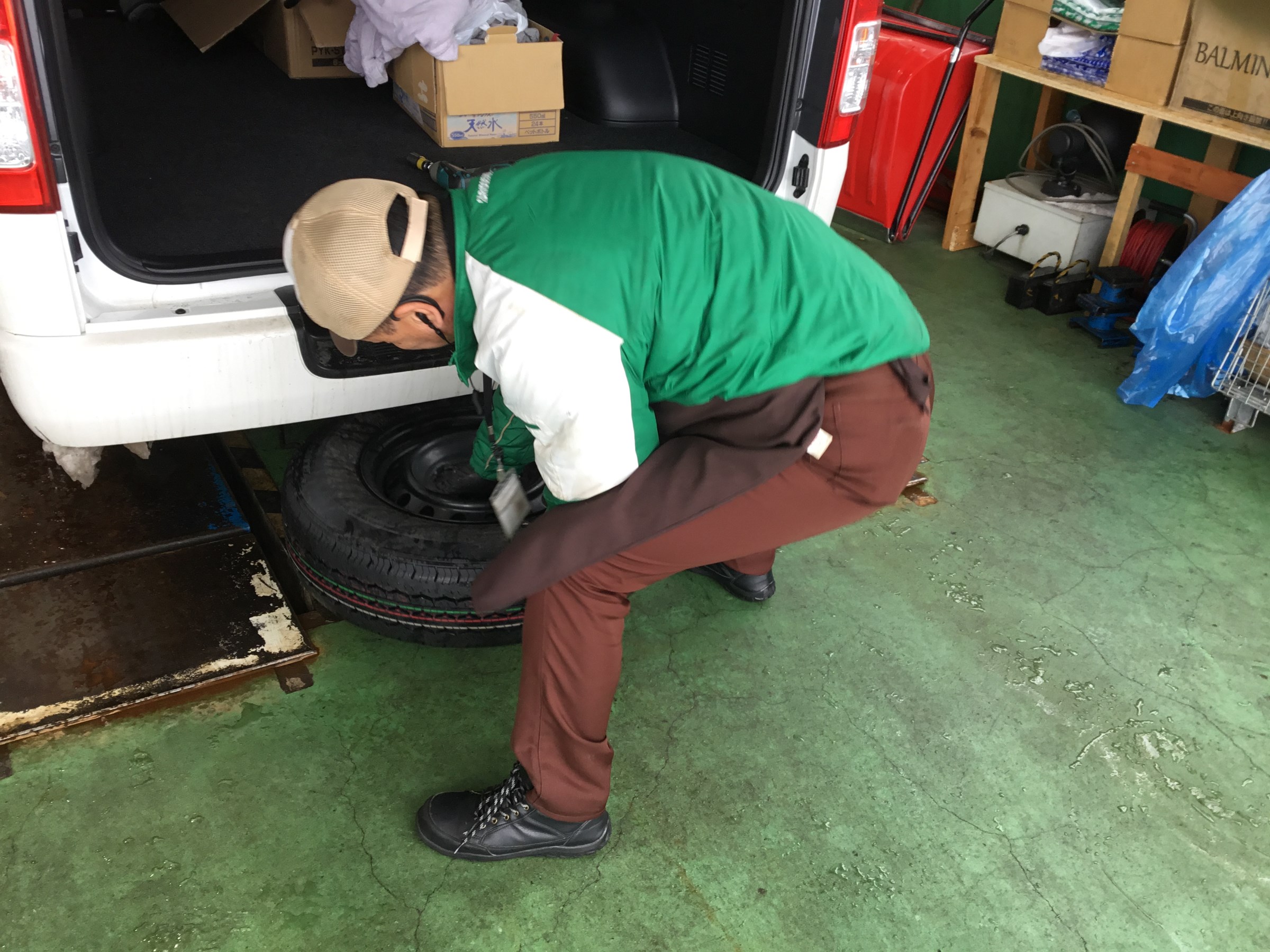 スペアタイヤの有るお車でしたので、所定の位置に積み込みです!!