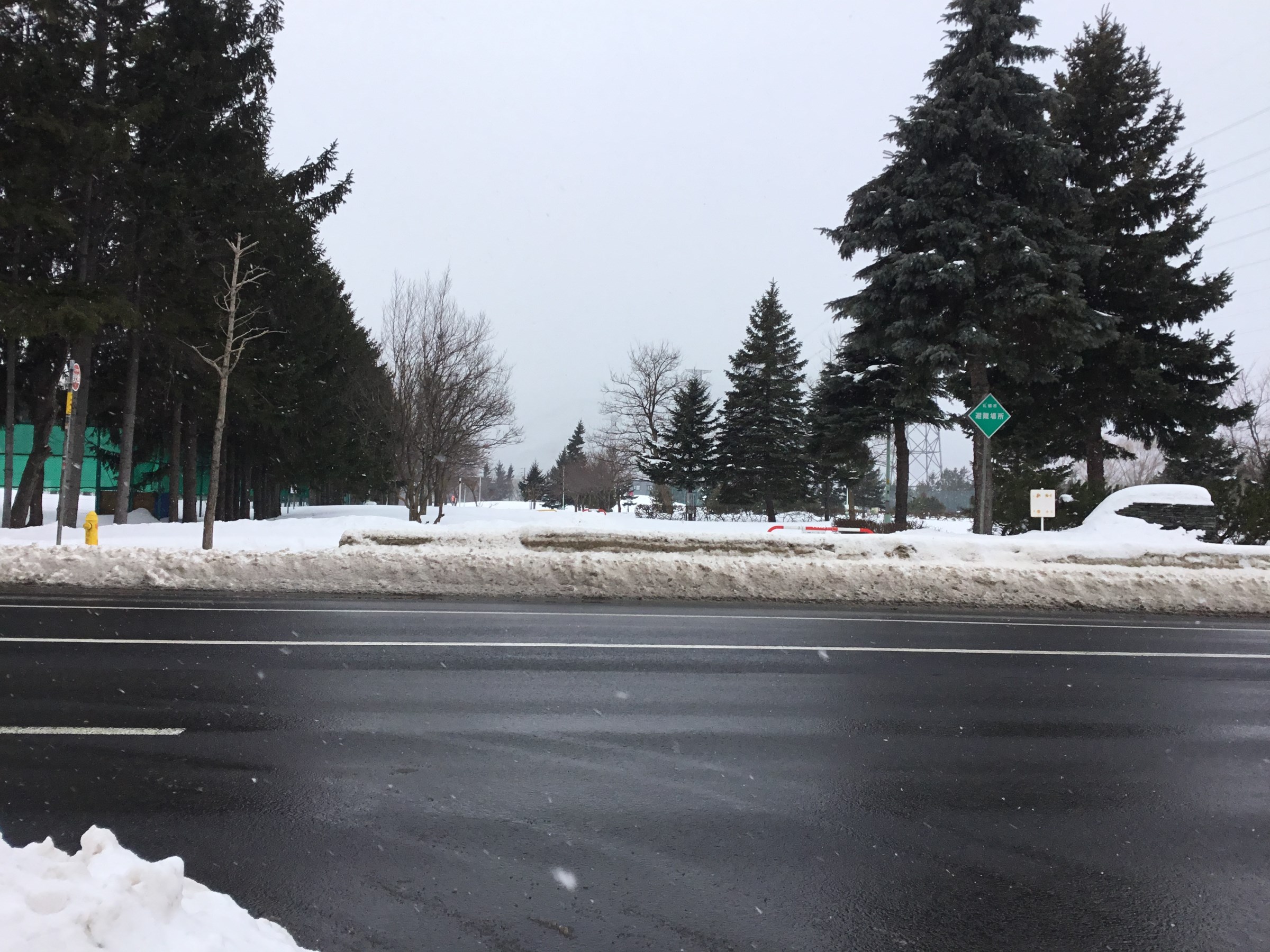 道路脇に雪山が有りますが、その雪山の中にタイヤにダメージを与える異物が