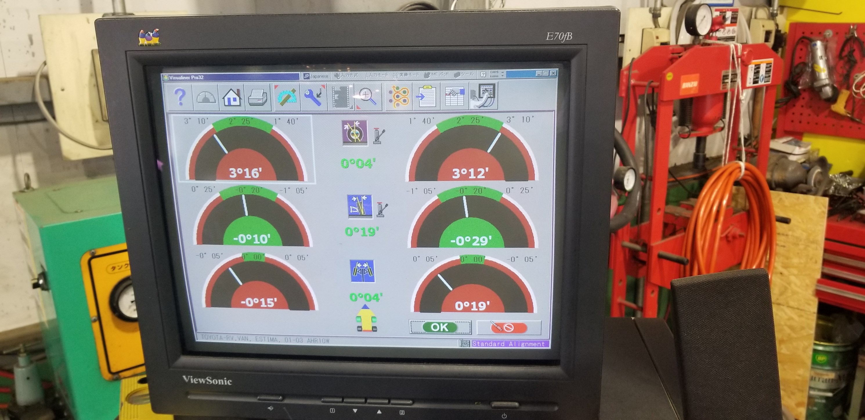 今日はエスティマのアライメント調整。