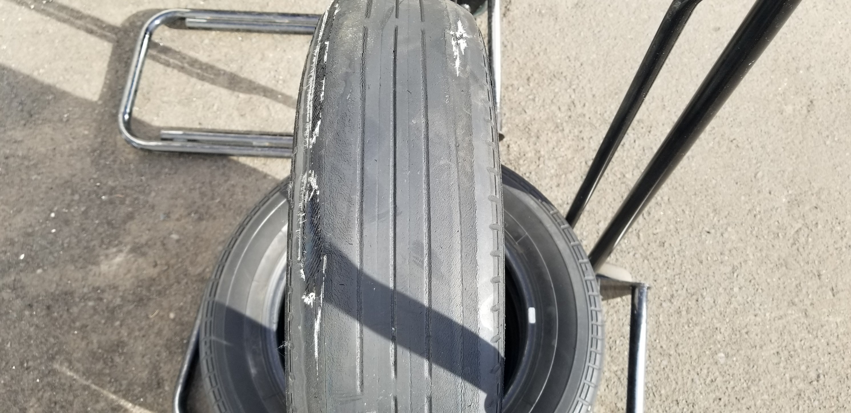 これはもう溝が無いどころか、中のワイヤーまで出てきてしまってしまっている状態です。