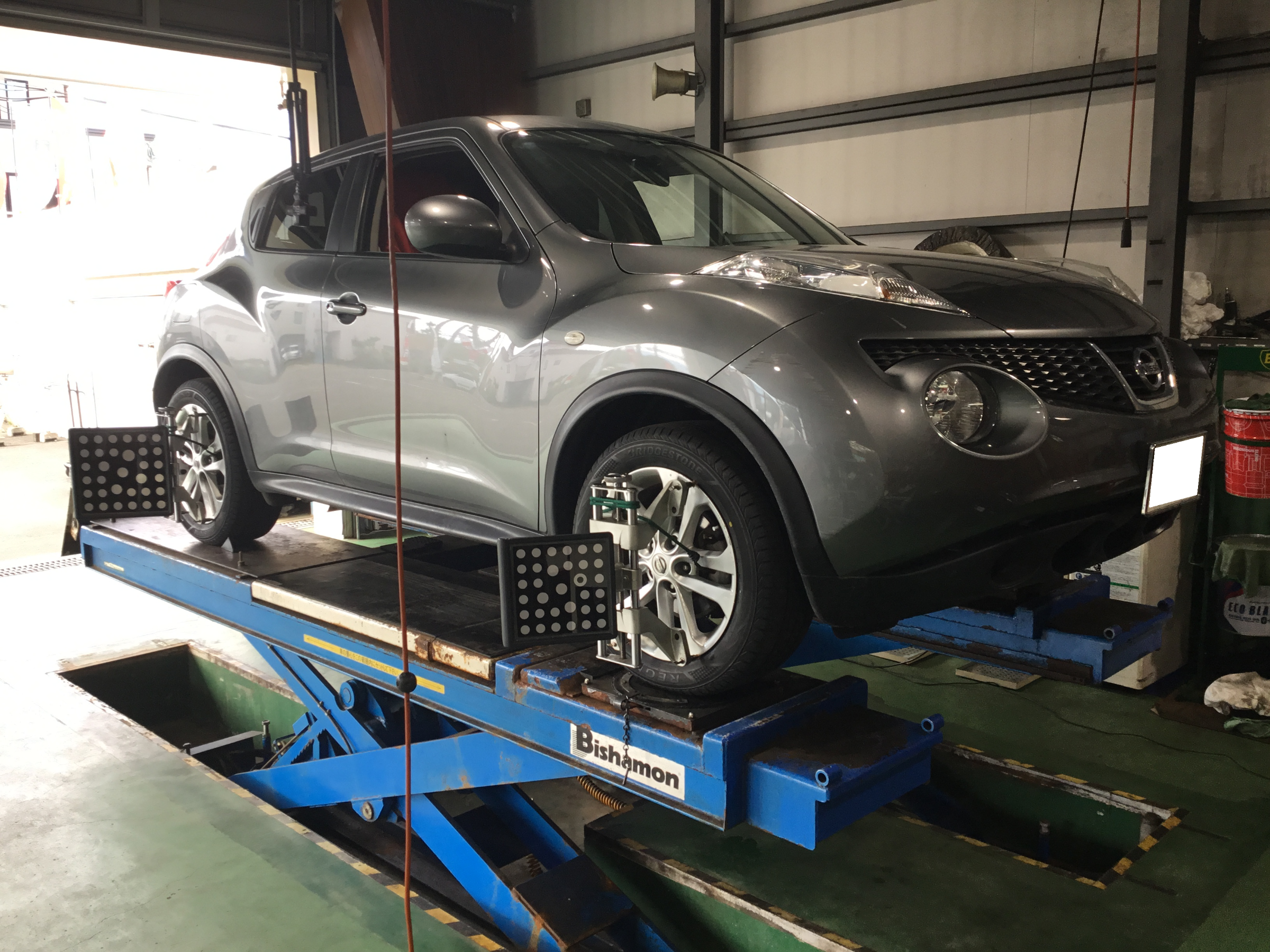 今日は日産ジュークにレグノGRVIIと当店自慢のアライメントをご紹介致します。