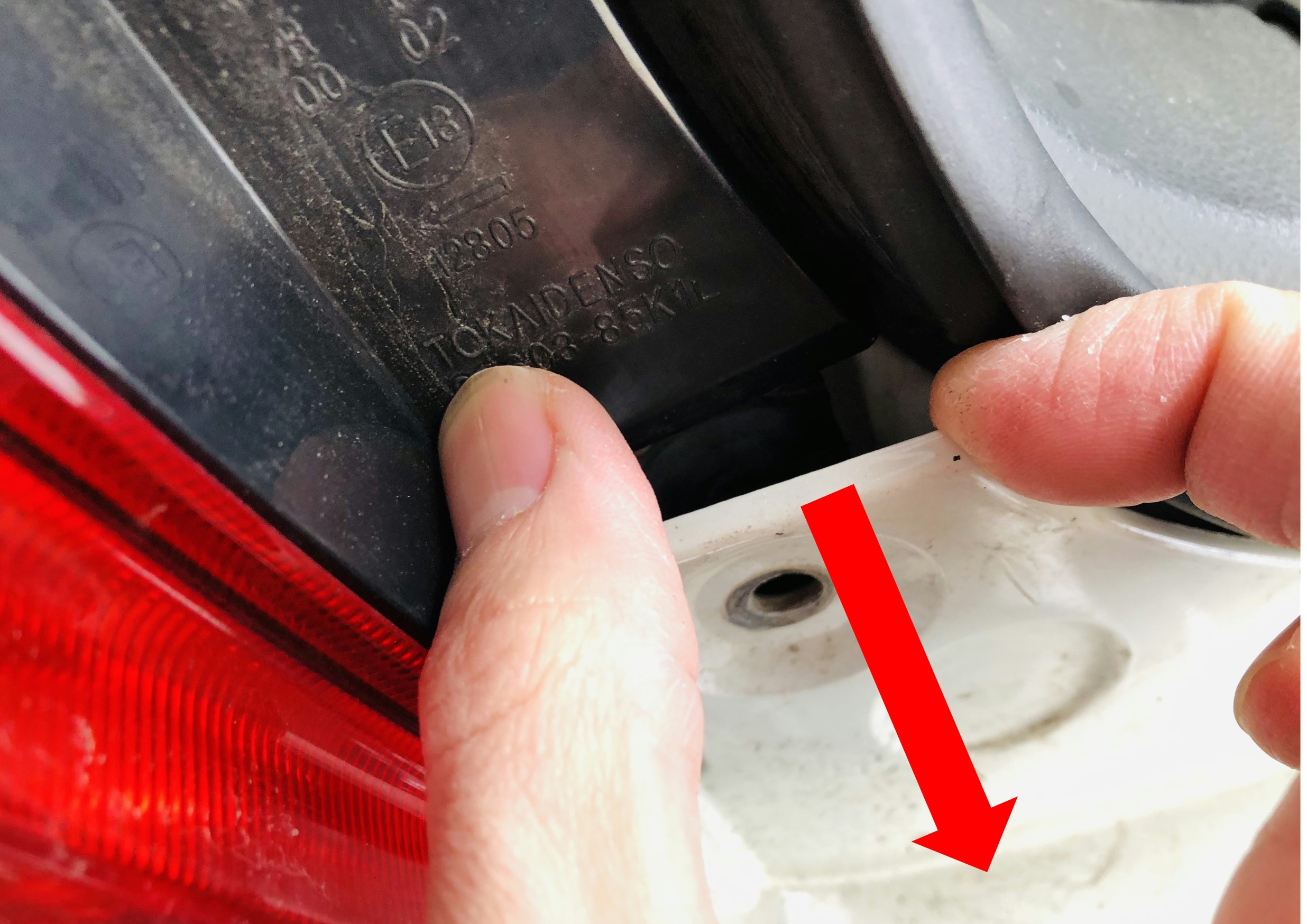 テールがバンパーに入り込んでいるので、バンパーをちょこっと手前に引っ張り、