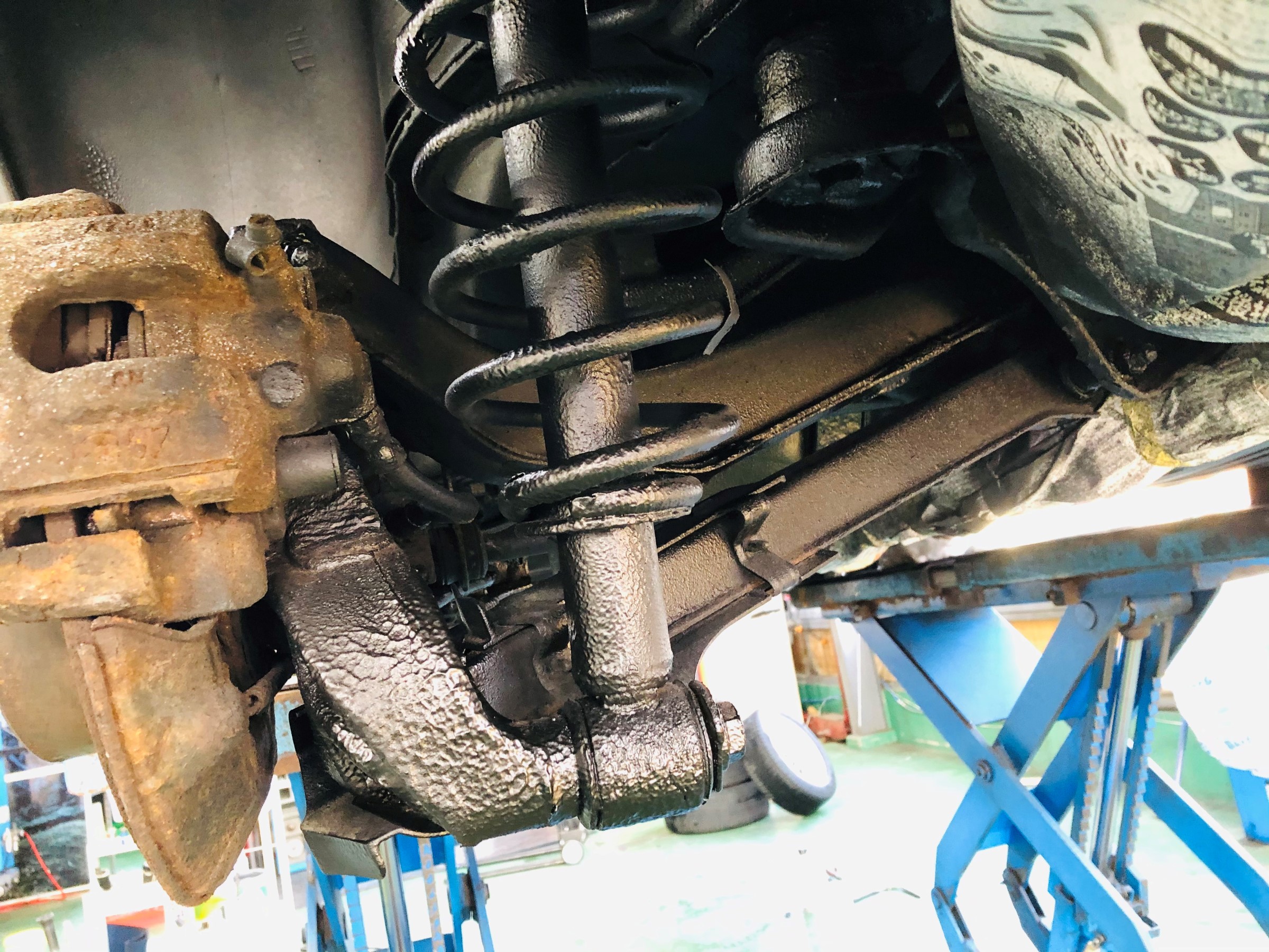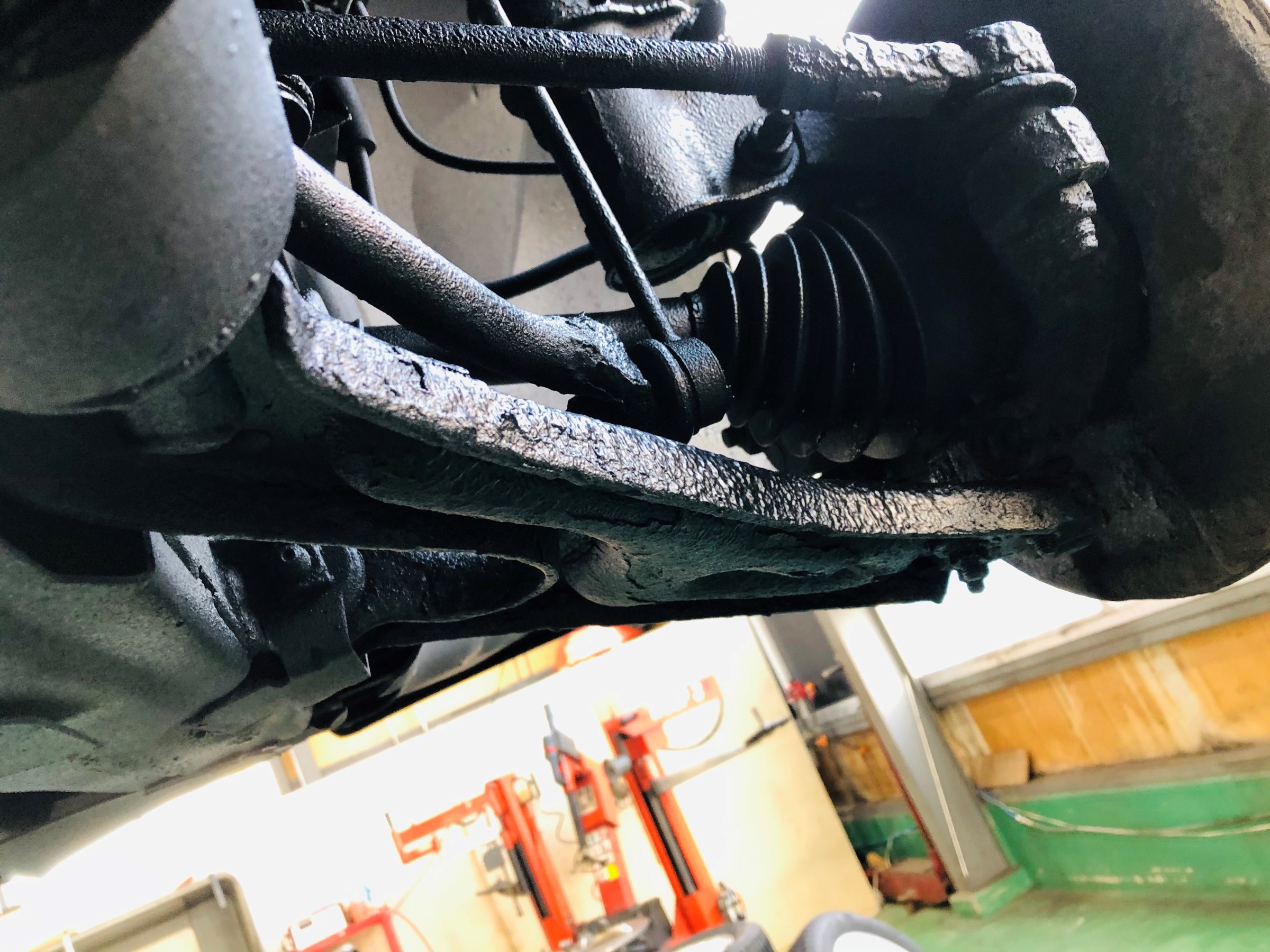 ③2日目➡塗料施工(マフラー塗装➡マフラー養生➡ブラック塗料で下回り塗装)