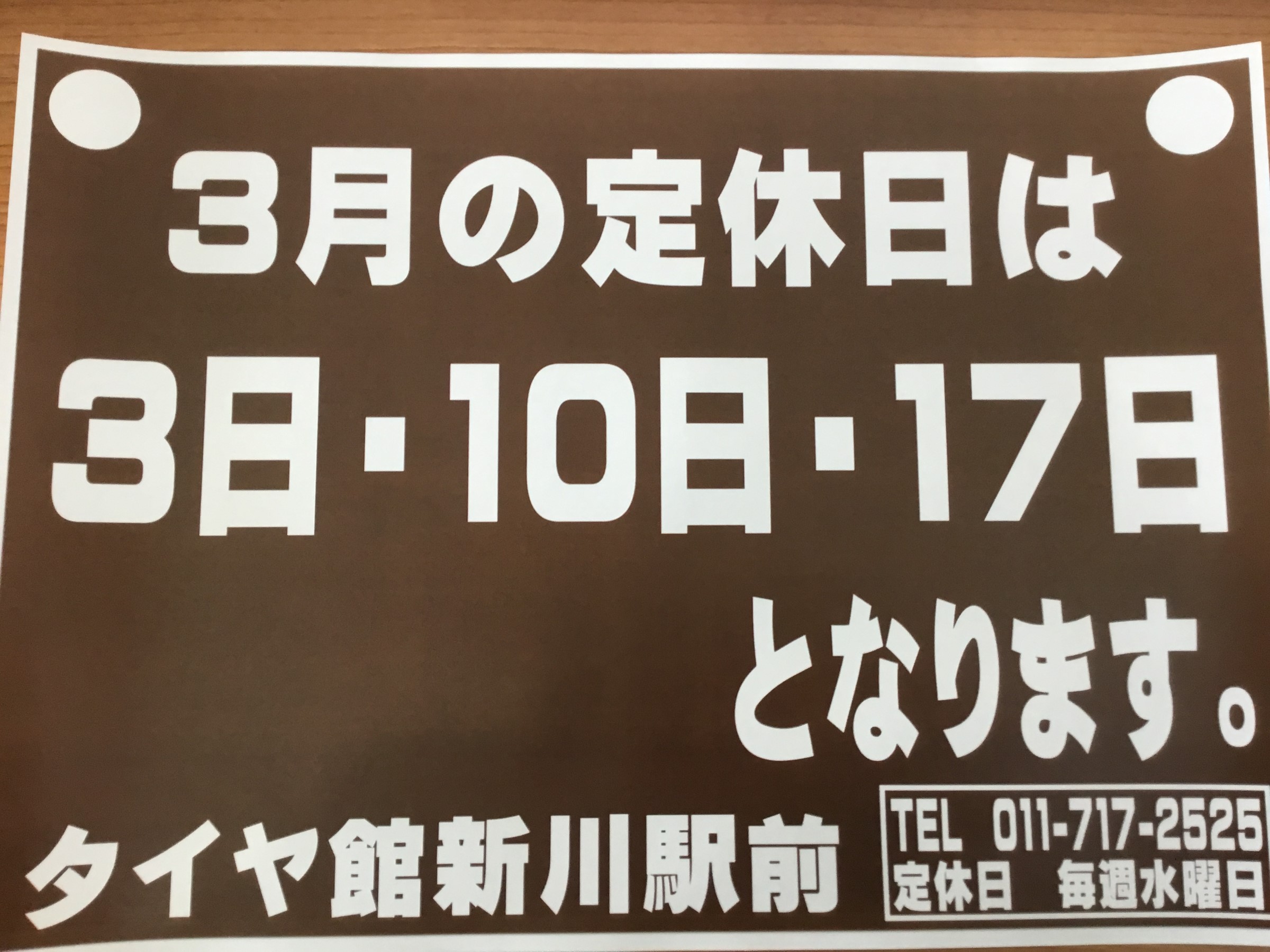 3月の定休日のご案内です!!