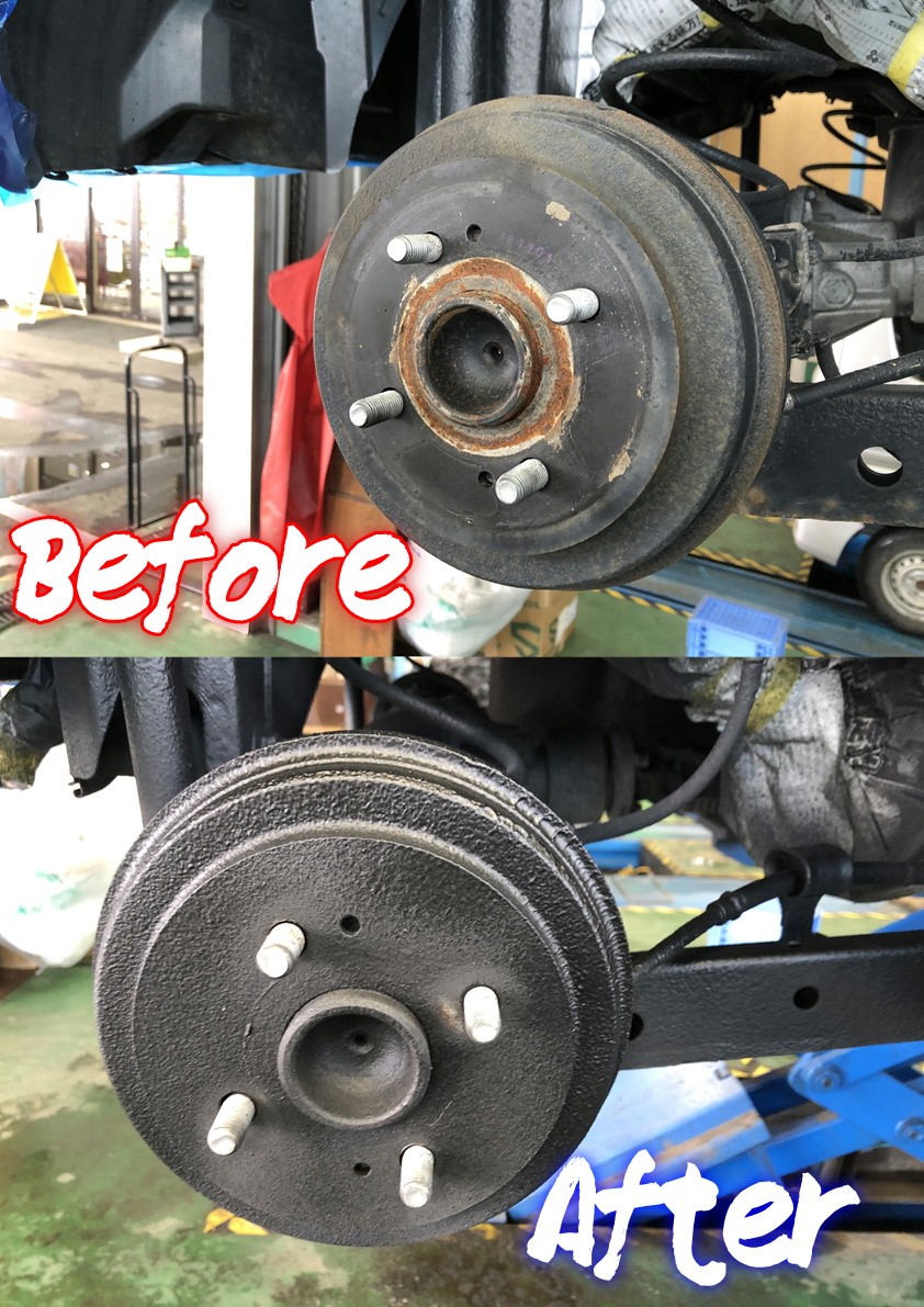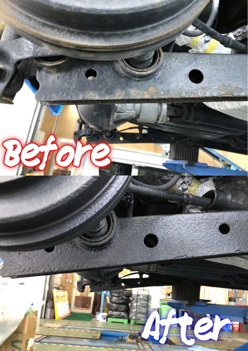 ③2日目➡塗料施工(マフラー塗装➡マフラー養生➡ブラック塗料で下回り塗装)