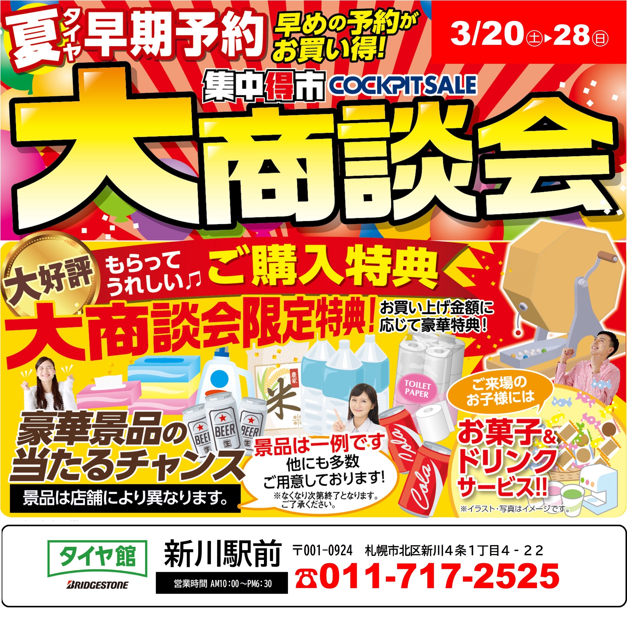 いよいよ大商談会開催しますよ! ポスト 2021年3月18日 こんにちは(^^) いつもブログをご覧いただきありがとうございます。 いよいよ2日後大商談会を開催します。 ご購入特典の豪華景品が当たるチャンスもありますので 夏タイヤ購入予定の方も、冬タイヤ購入予定の方も 是非、この機会をお見逃しなく!! 沢山のご来店お待ちしております。 担当:よしだ