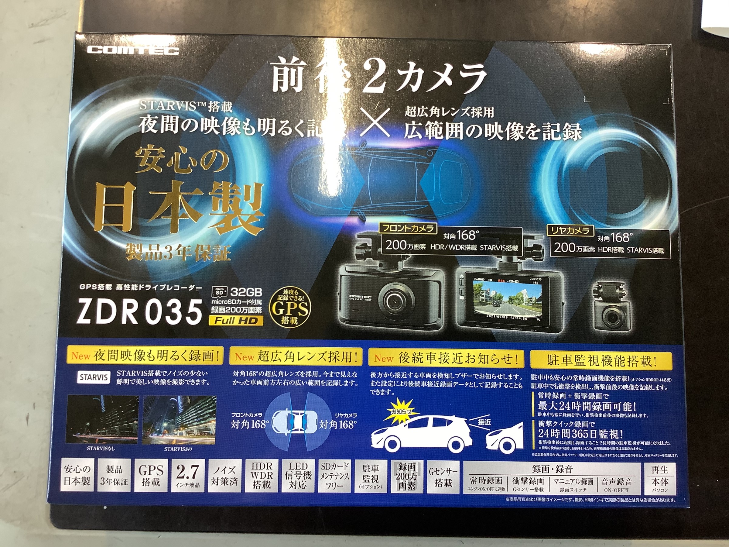 コムテック 「ZDR035」 フロントカメラ リアカメラの2カメタイプのドライブレコーダーです。