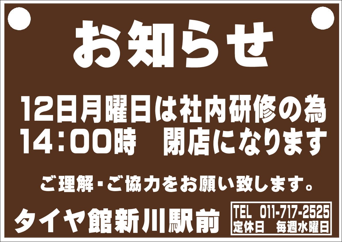 営業時間のお知らせ ポスト 2021年7月10日 こんにちは! いつもブログをご覧いただきありがとうございます。 7月12日(月)の営業時間変更のお知らせです。 お間違えないようお願い致します! 担当:木村